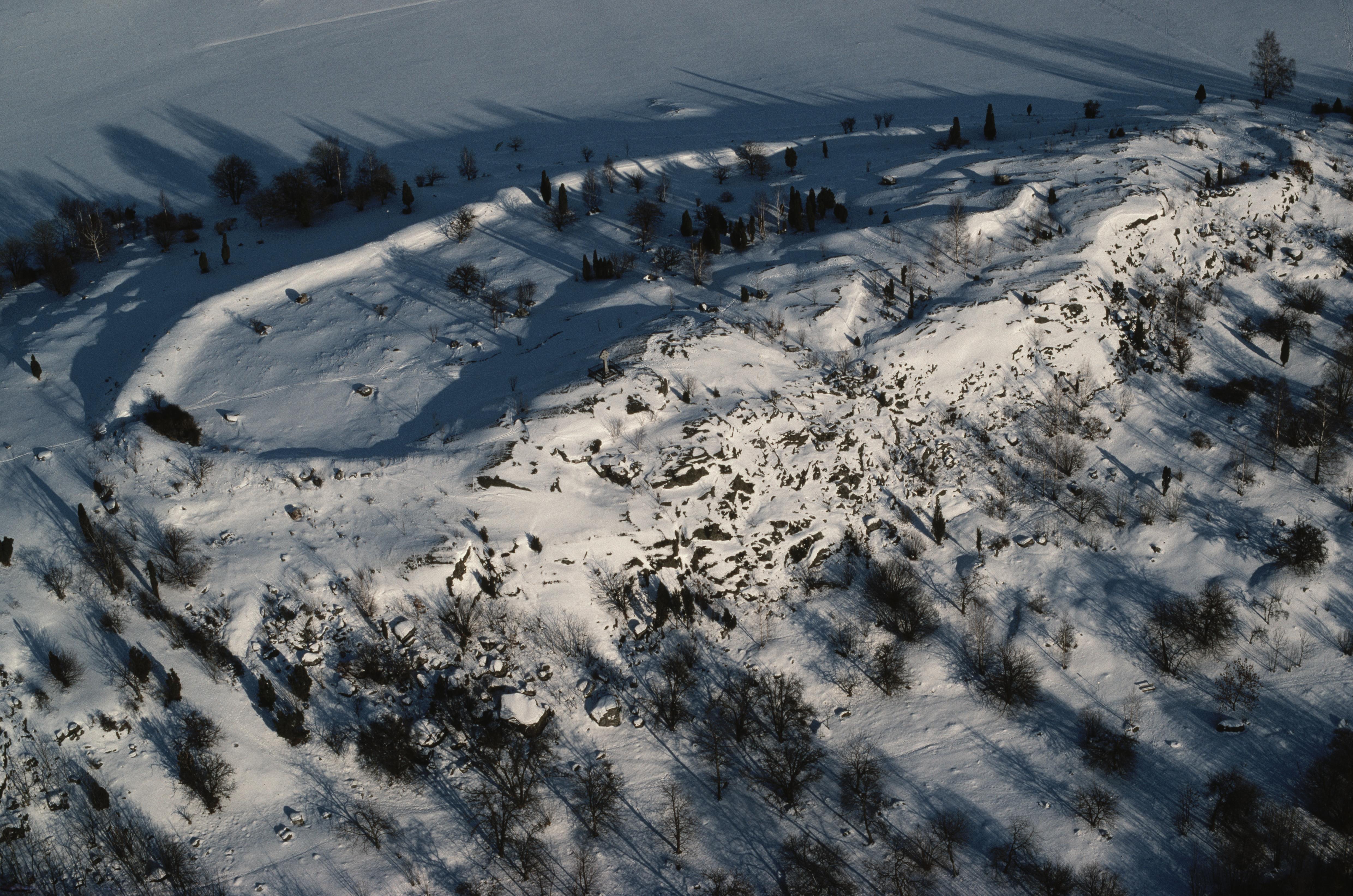 Beskrivning: Fornlämningsområdet Birka på Björkö i Mälaren. Fornborg Borg RAÄnr Adelsö 34:1. Till höger gravfält Borgs hage RAÄnr Adelsö 35:1. Bilden är tagen mot (väderstreck): ONO