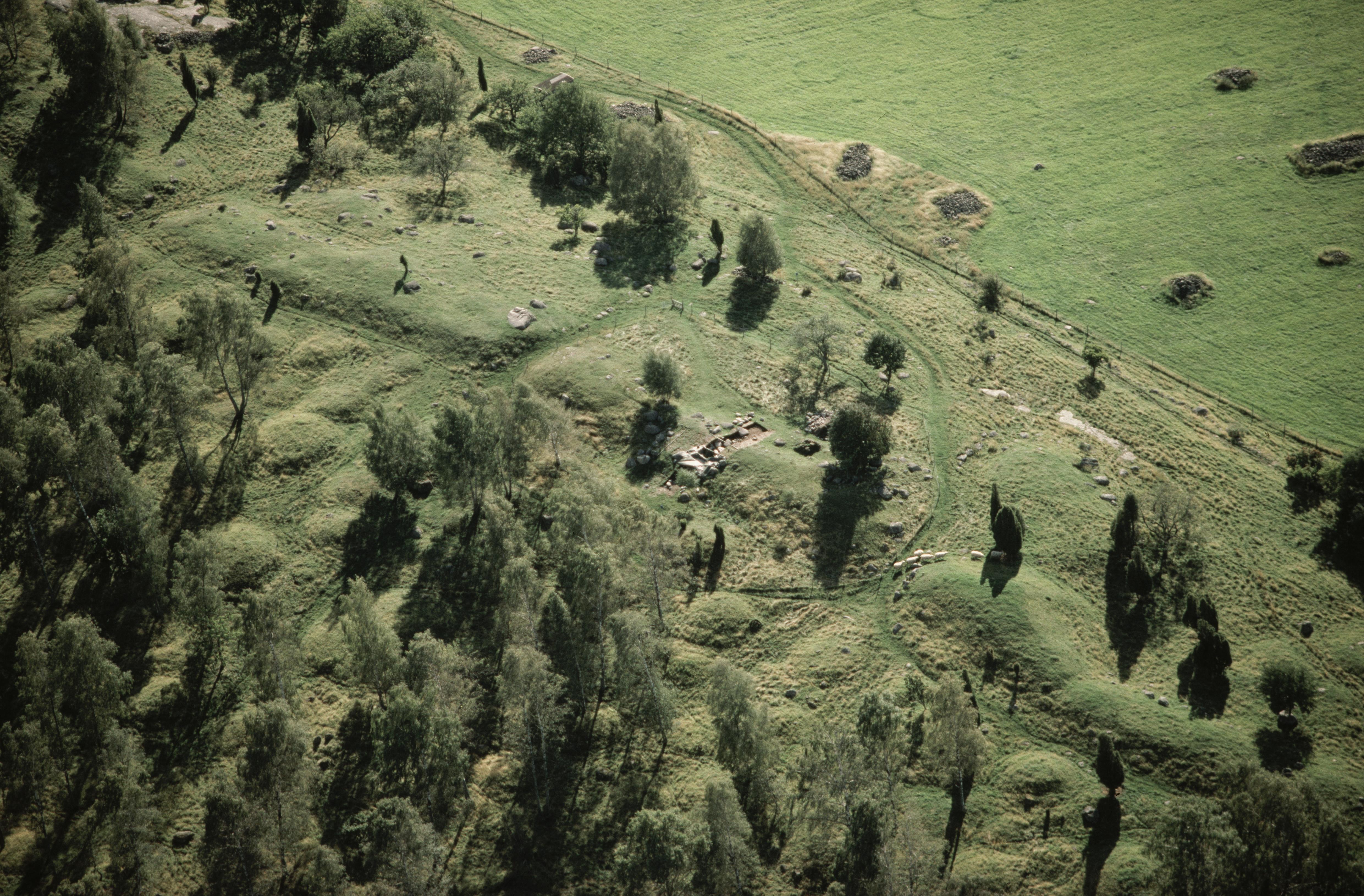 Beskrivning: Fornlämningsområdet Birka på Björkö i Mälaren. Norra delen av ön vid Stadsvallen RAÄnr Adelsö 119:1-2 och området Hemlanden och Svarta jorden RAÄnr Adelsö 118:1. Bilden är tagen mot (väderstreck): SV