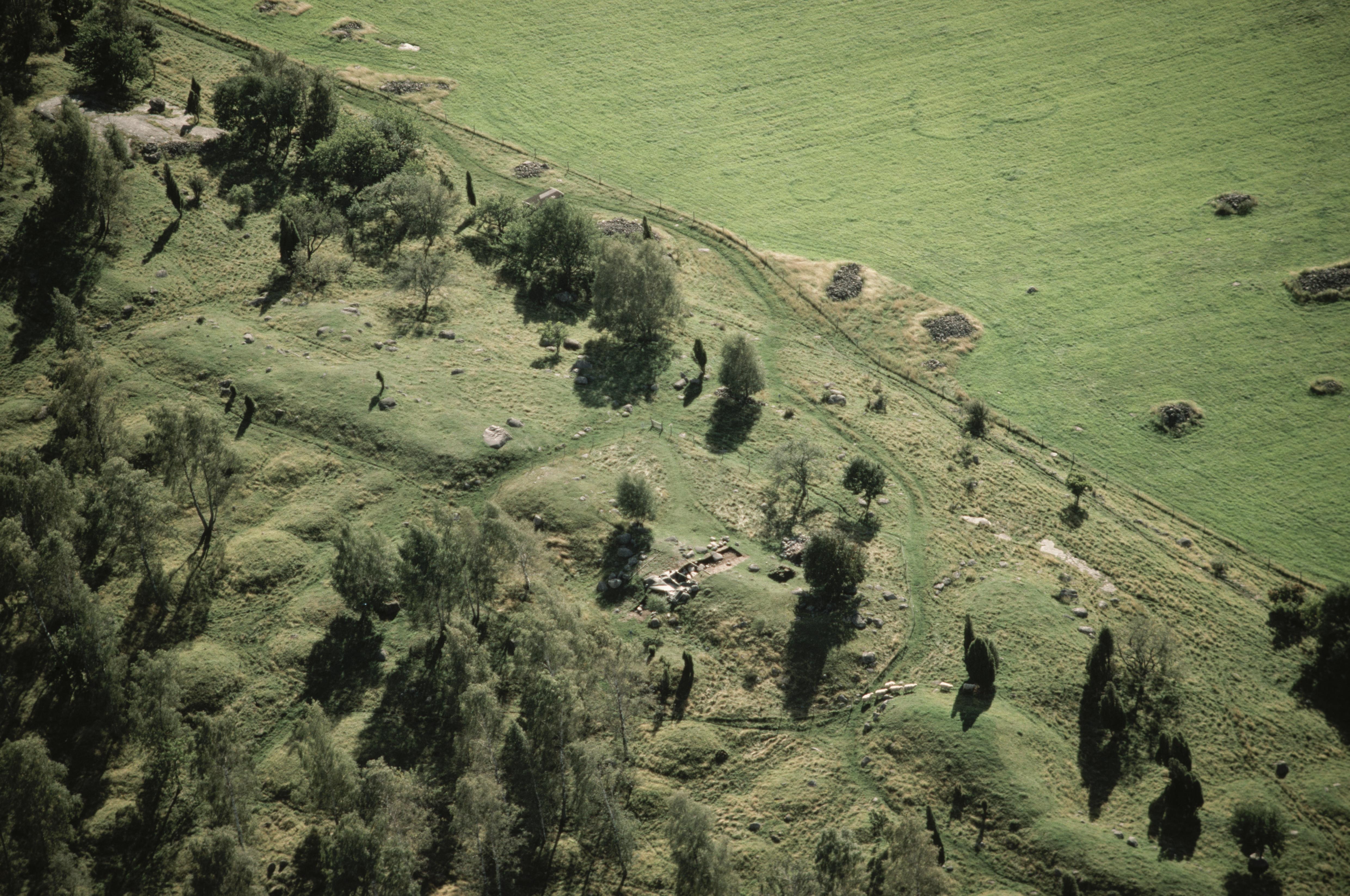 Beskrivning: Fornlämningsområdet Birka på Björkö i Mälaren. Norra delen av ön vid Stadsvallen RAÄnr Adelsö 119:1-2 och området Hemlanden och Svarta jorden RAÄnr Adelsö 118:1. Bilden är tagen mot (väderstreck): SV