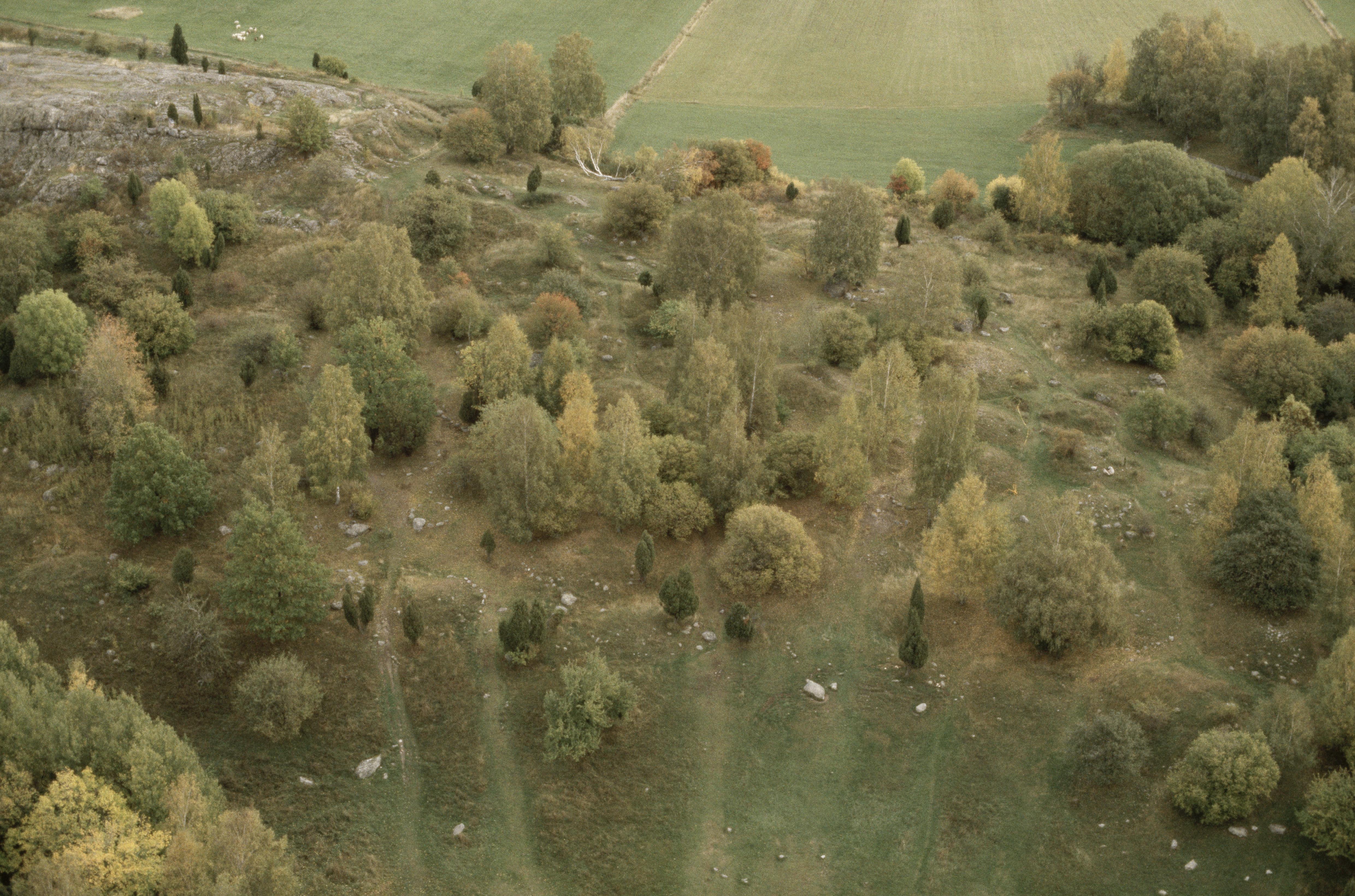 Beskrivning: Fornlämningsområdet Birka på Björkö i Mälaren. Stigar i gravfält Borgs hage RAÄnr Adelsö 35:1 vid fornborg Borg RAÄnr Adelsö 34:1. Bilden är tagen mot (väderstreck): NNO