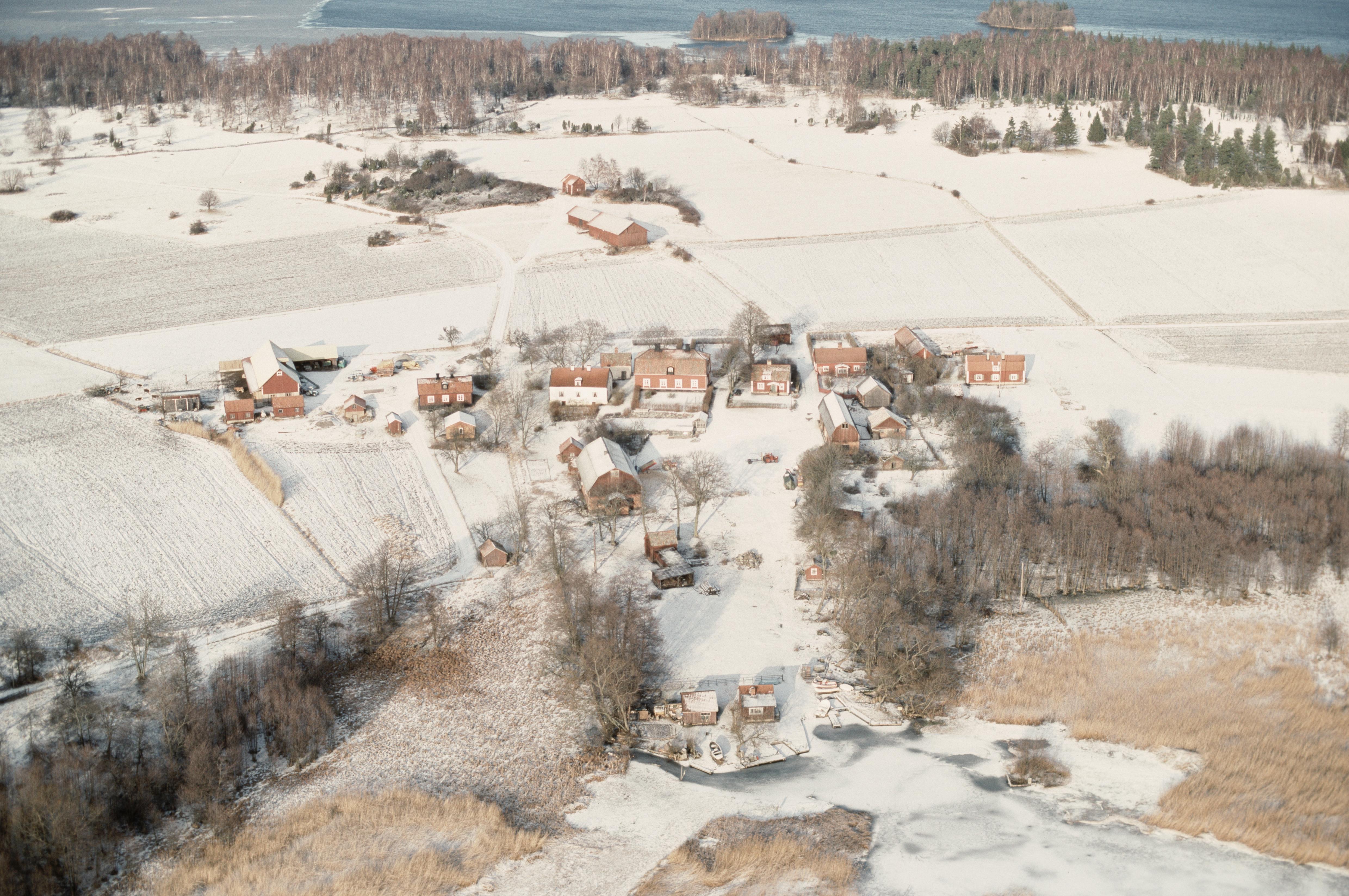 Beskrivning: Fornlämningsområdet Birka i norra delen på Björkö i Mälaren. Kassviken i bildens nedre del. Vid bildens mitt Björkö by och bytomt RAÄnr Adelsö 255:1. Över bildens mitt bo- och gravplats Hemlanden och Svarta jorden RAÄnr Adelsö 118:1 vid Grindsbacka. Bilden är tagen mot (väderstreck): N