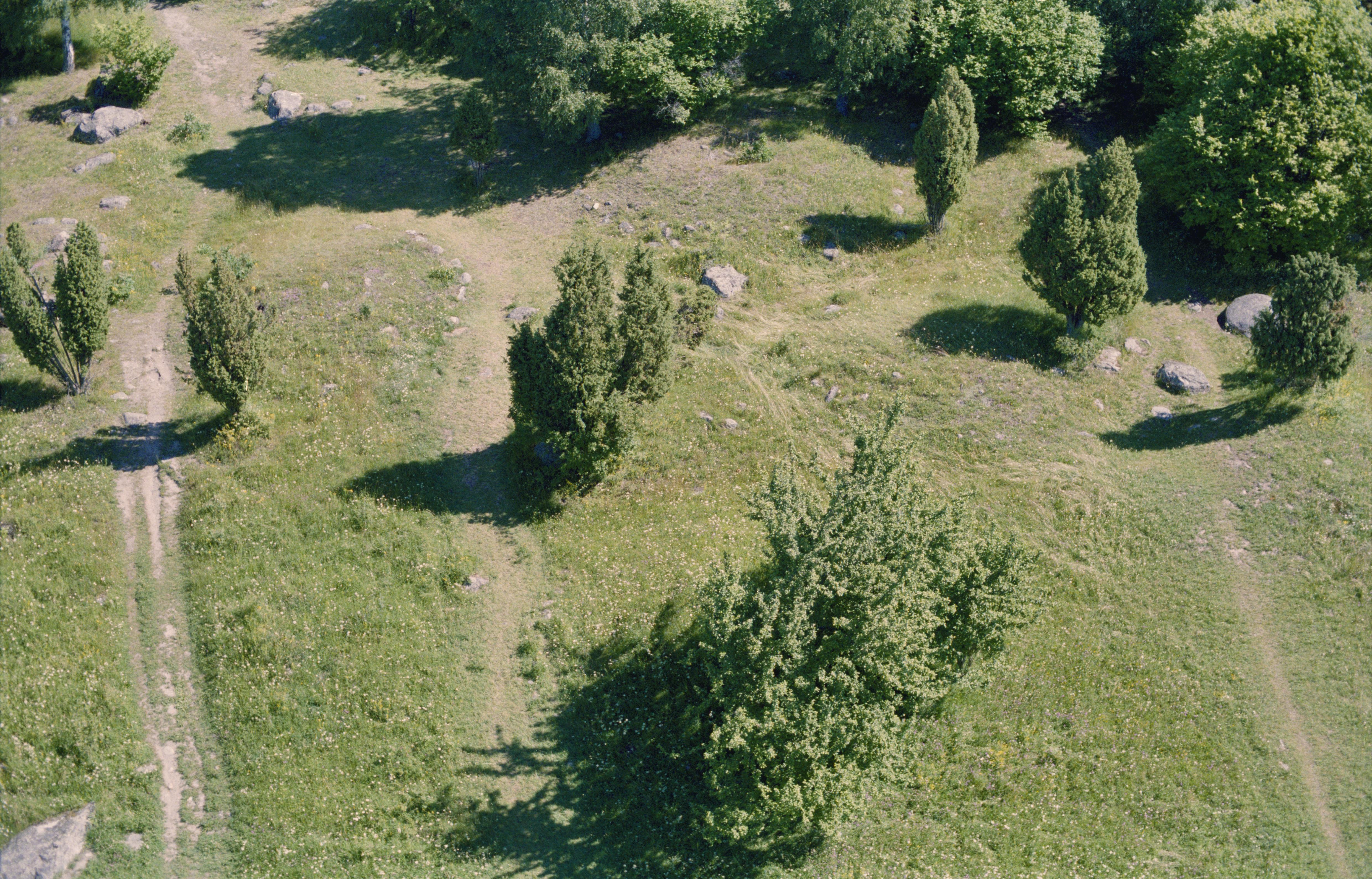 Beskrivning: Fornlämningsområdet Birka på Björkö i Mälaren. Fornborg Borg RAÄnr Adelsö 34:1 i området Garnisonen vid Ansgarsmonumentet och gravfält Borgs hage Adelsö 35:1. Bilden är tagen mot (väderstreck): N