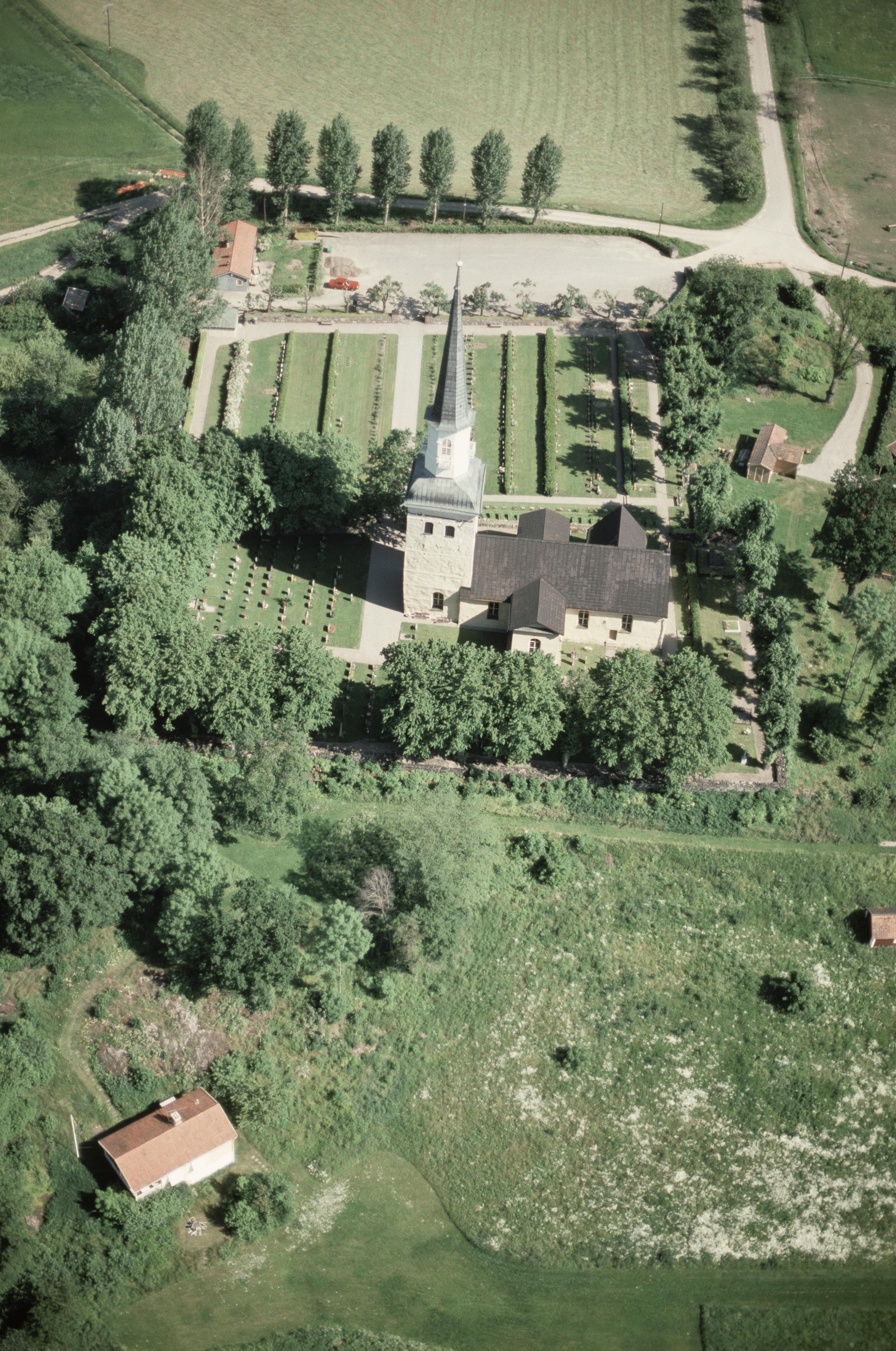 Beskrivning: Ekerö kyrka vid Asknäs och Kyrkfjärden i Mälaren. Vid kyrkan flera fornlämningar, bl.a. hög RAÄnr Ekerö 2:1. Bilden är tagen mot (väderstreck): N