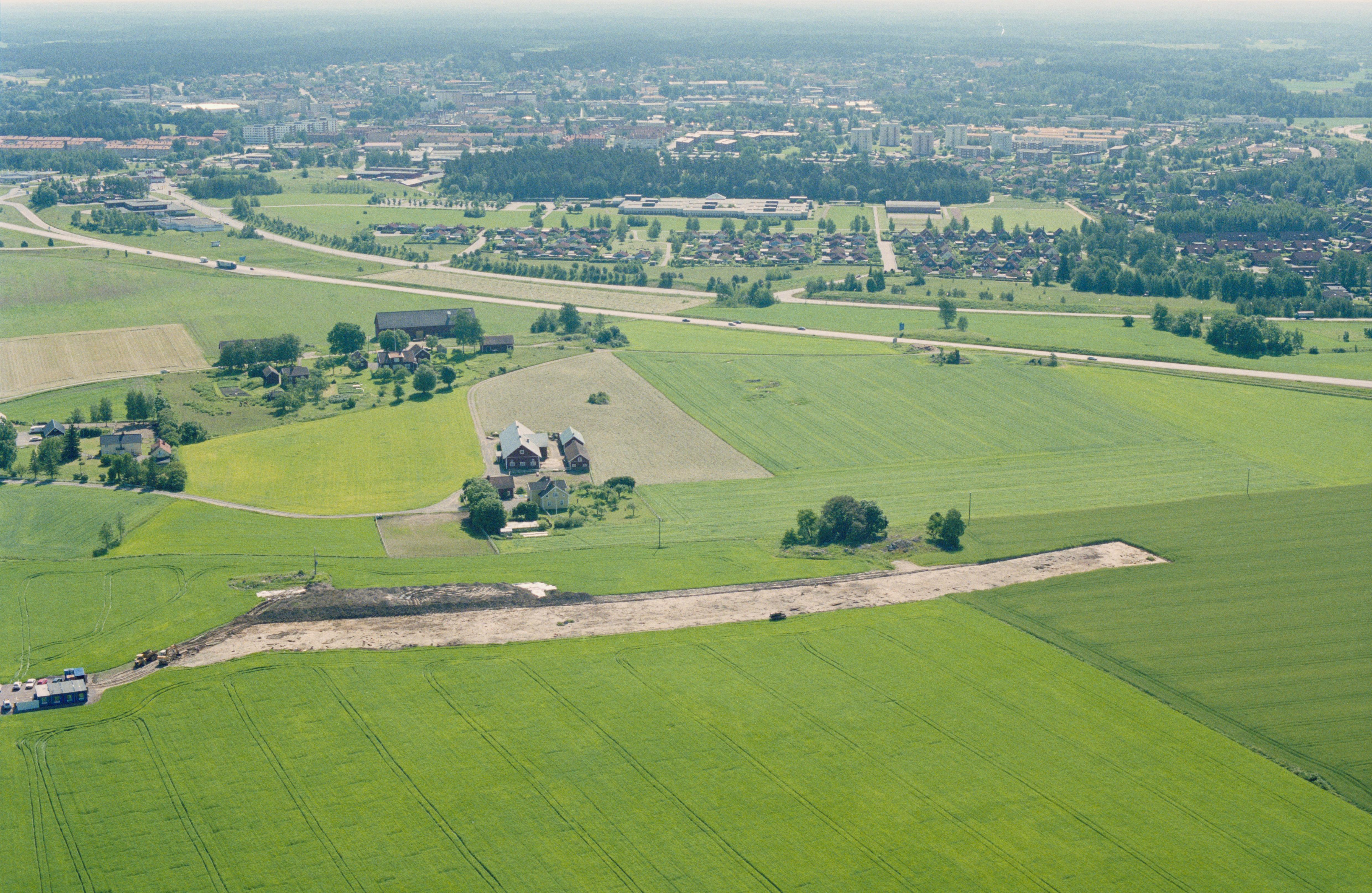 Beskrivning: Arkeologisk undersökning vid gränsen mellan socknen Högby och Mjölby innan bygging av ny väg. Boplats RAÄnr Högby 89:1 m.fl. Bilden är tagen mot (väderstreck): VNV