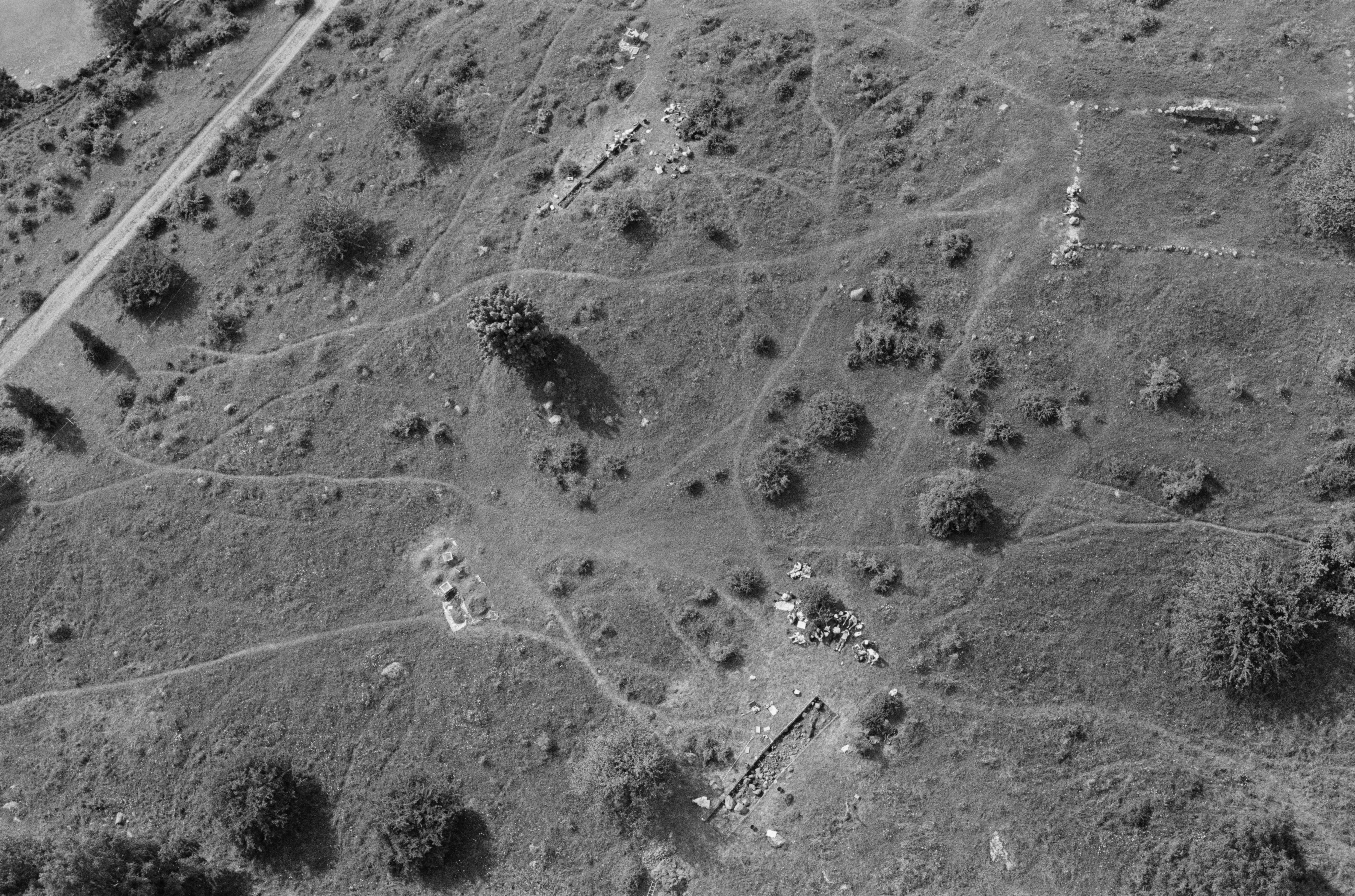Beskrivning: Fornlämningsområdet Hovgården RAÄnr Adelsö 46:2 på Adelsön vid Hovgårdsfjärden i Mälaren. Arkeologisk undersökning i Alsnö hus RAÄnr Adelsö 47:1, stensättningar Adelsö 236 och 237 m.fl. Bilden är tagen mot (väderstreck): SSO