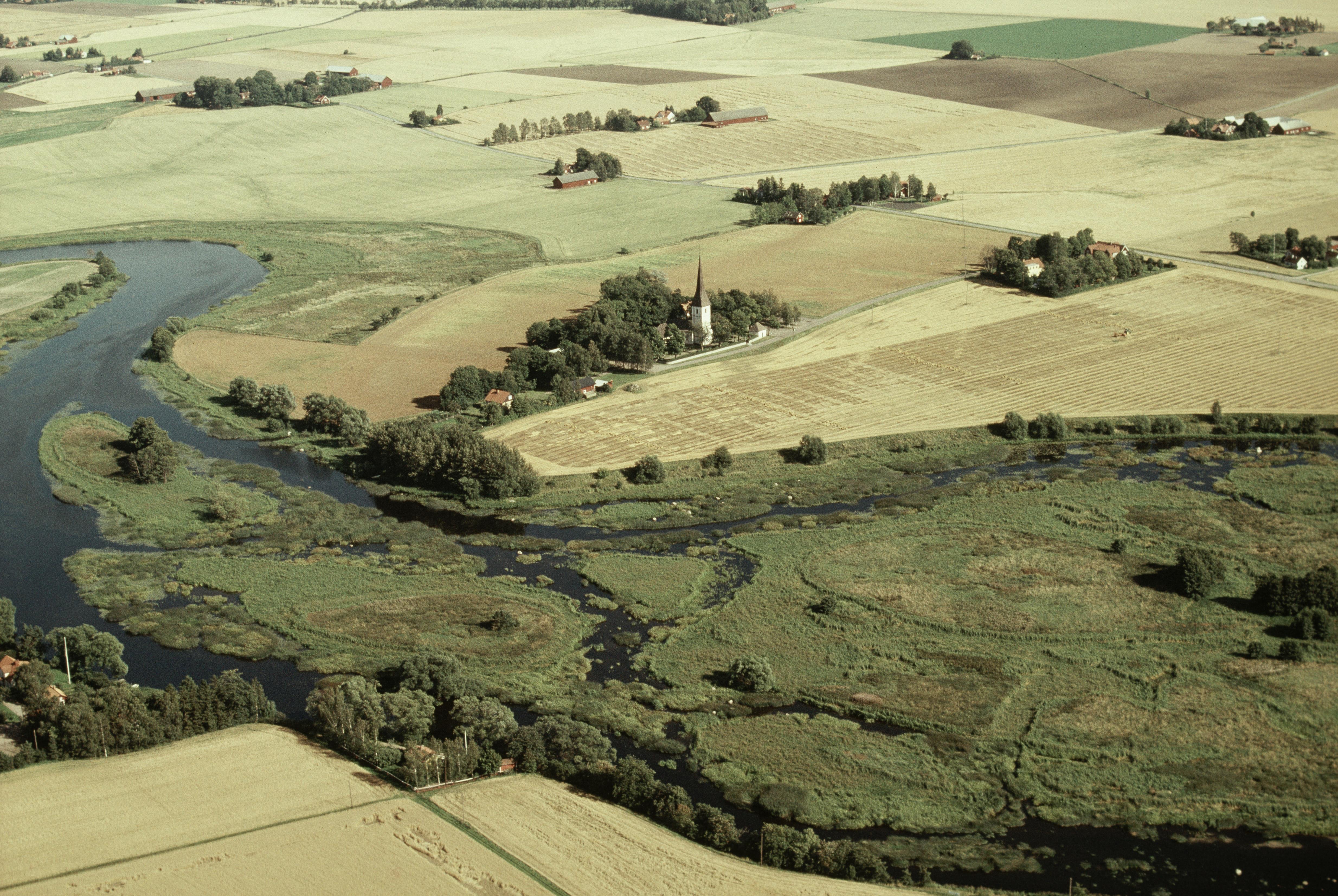Beskrivning: Svartåns dalgång. Kaga kyrka vid Svartån. Bilden är tagen mot (väderstreck): OSO