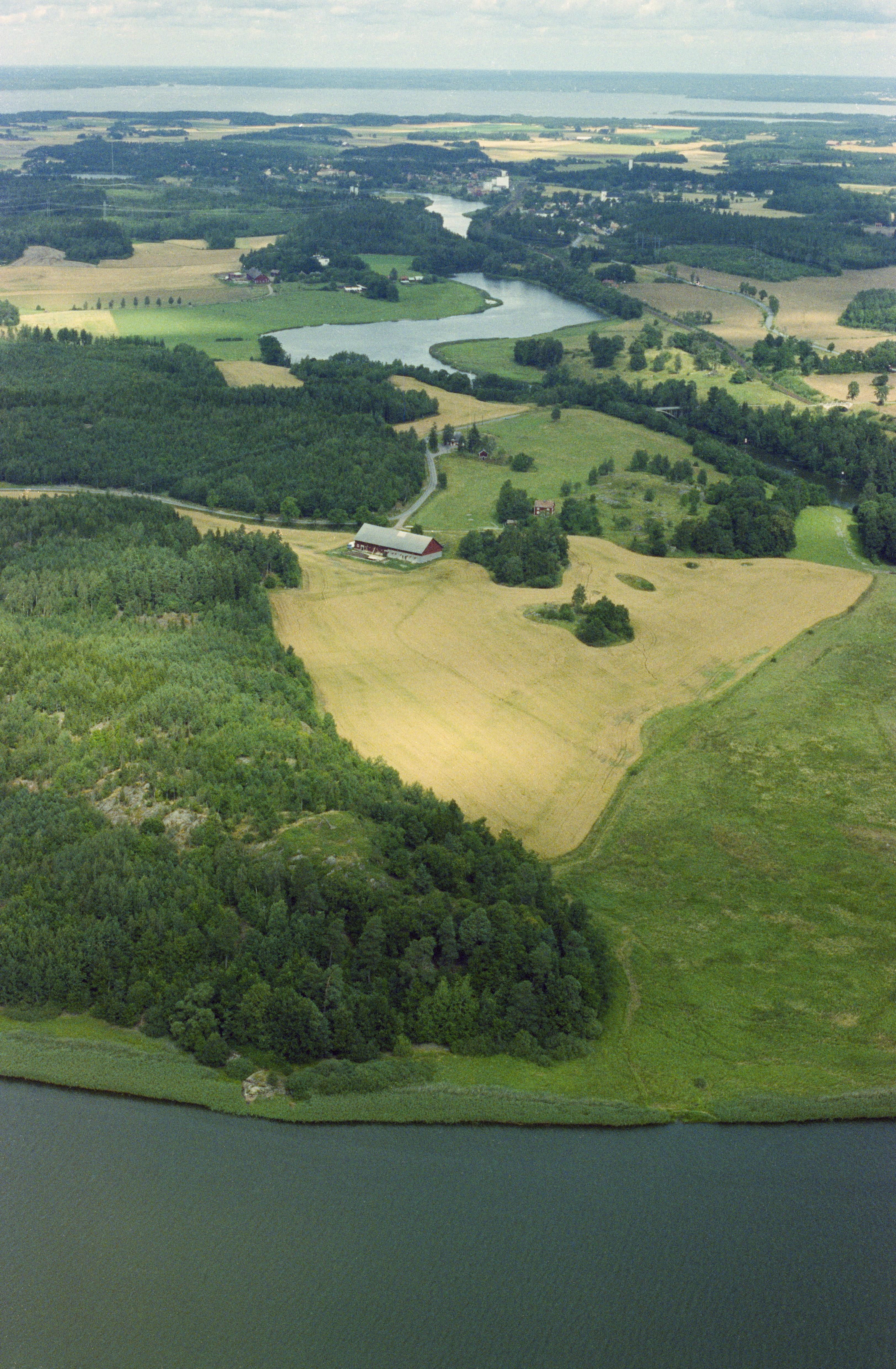 Beskrivning: Göta kanal (i bildens nedre del) och Motala ström vid Ladugården och områden vid Norsholms herrgård. Henriksborgs ruiner RAÄnr Kimstad 92:1 nere till vänster, Bilden är tagen mot (väderstreck): N