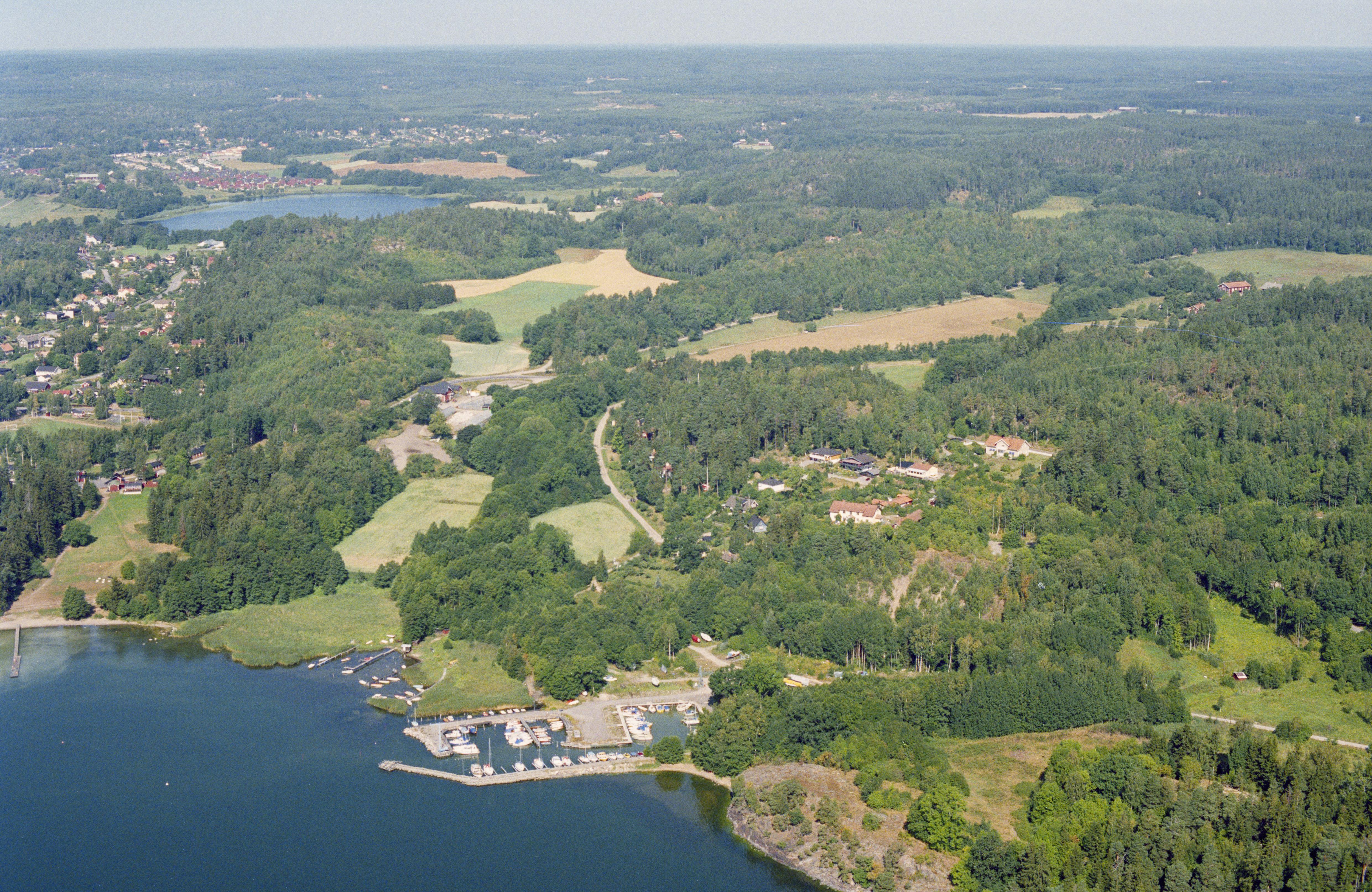 Beskrivning: Bodaviken i Bråviken. Östra delen av tätorten Nere till vänster boplats RAÄnr Krokek 1:1 m.fl. vid Fagervik och Marmorbruket. I bildens övre del Kolmården. Bilden är tagen mot (väderstreck): NV