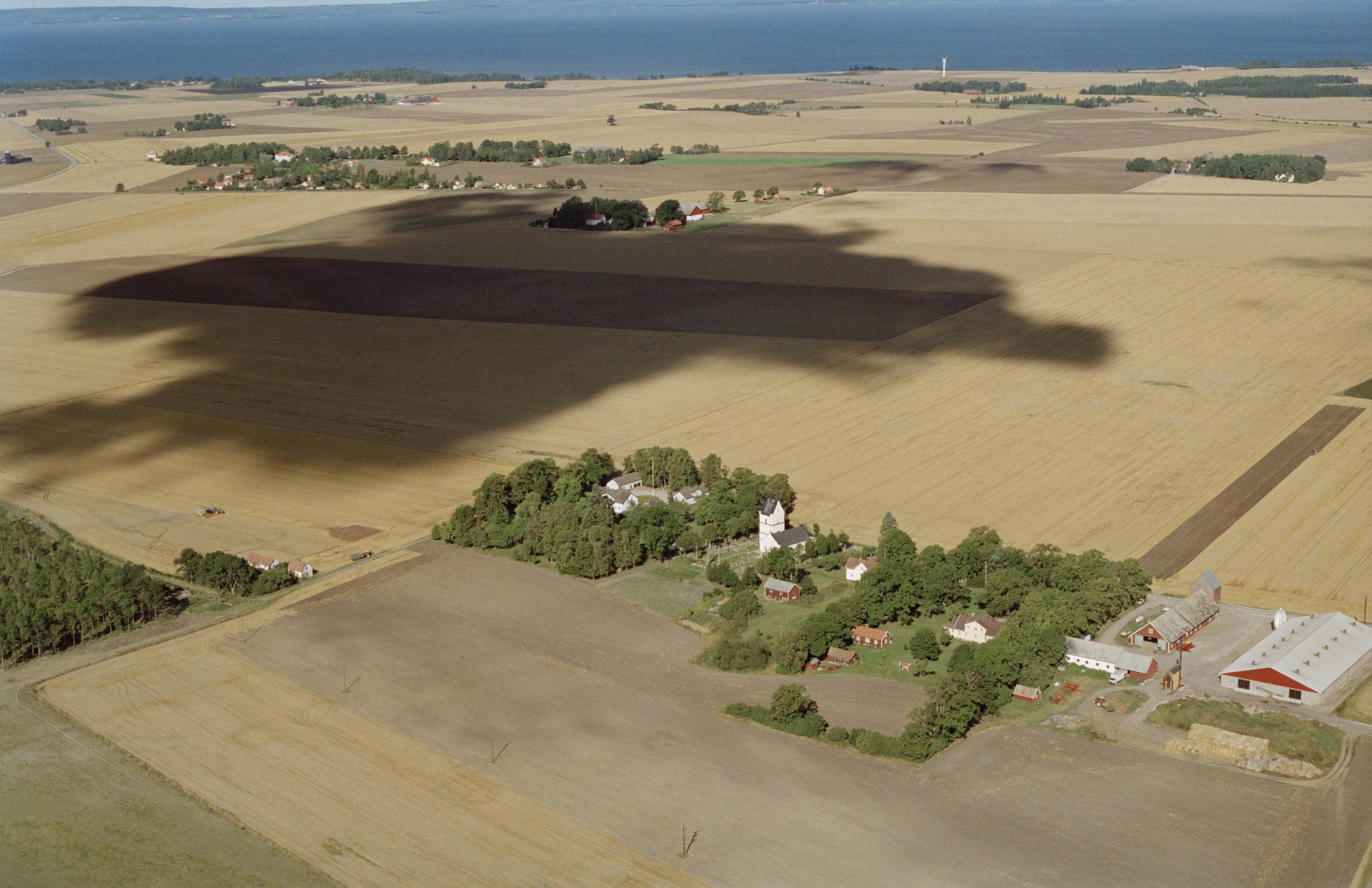 Beskrivning: Källstads kyrka. (Bilden innehåller en stor molnskugga). Bilden är tagen mot (väderstreck): NV