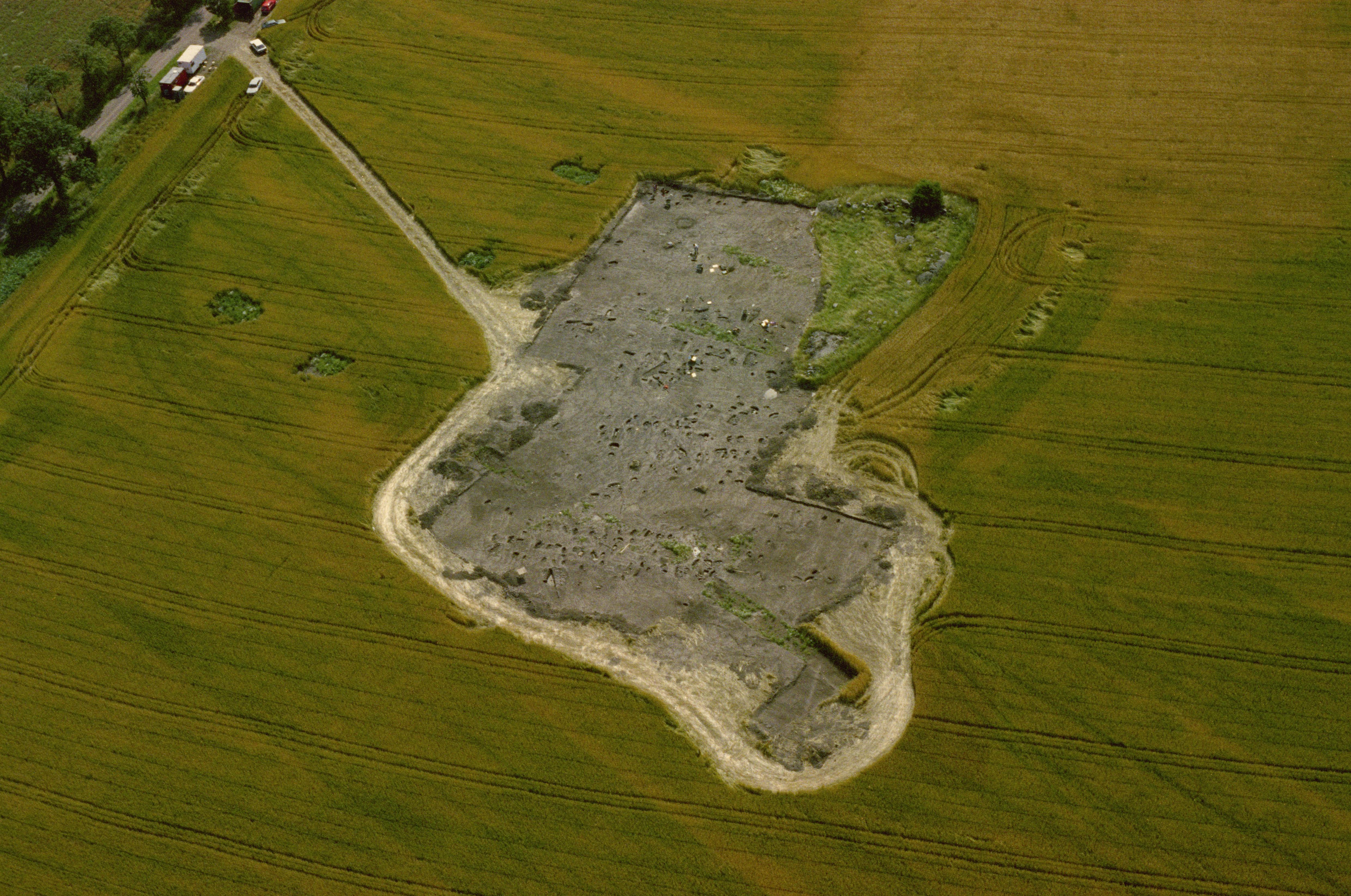 Beskrivning: Linköpings stad. Arkeologisk undersökning (innan vägbygge) vid Mörtlösa i stadsdelen Kallerstad. Boplats och hällristningar Linköping 326:1-3. Bilden är tagen mot (väderstreck): SO