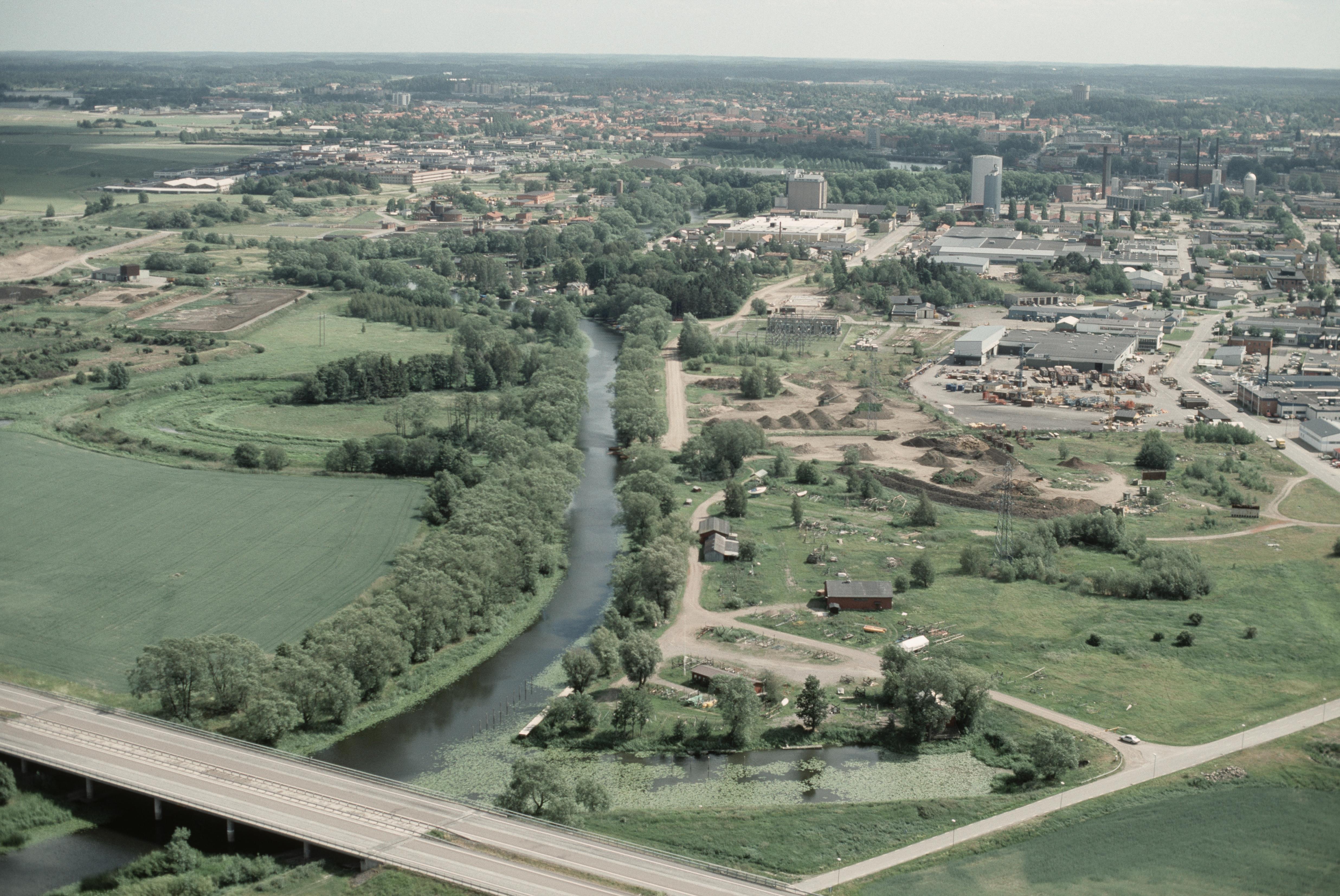 Beskrivning: Linköpings stad. Väg E4 över Stångån vid Västergården. Bilden är tagen mot (väderstreck): SSO