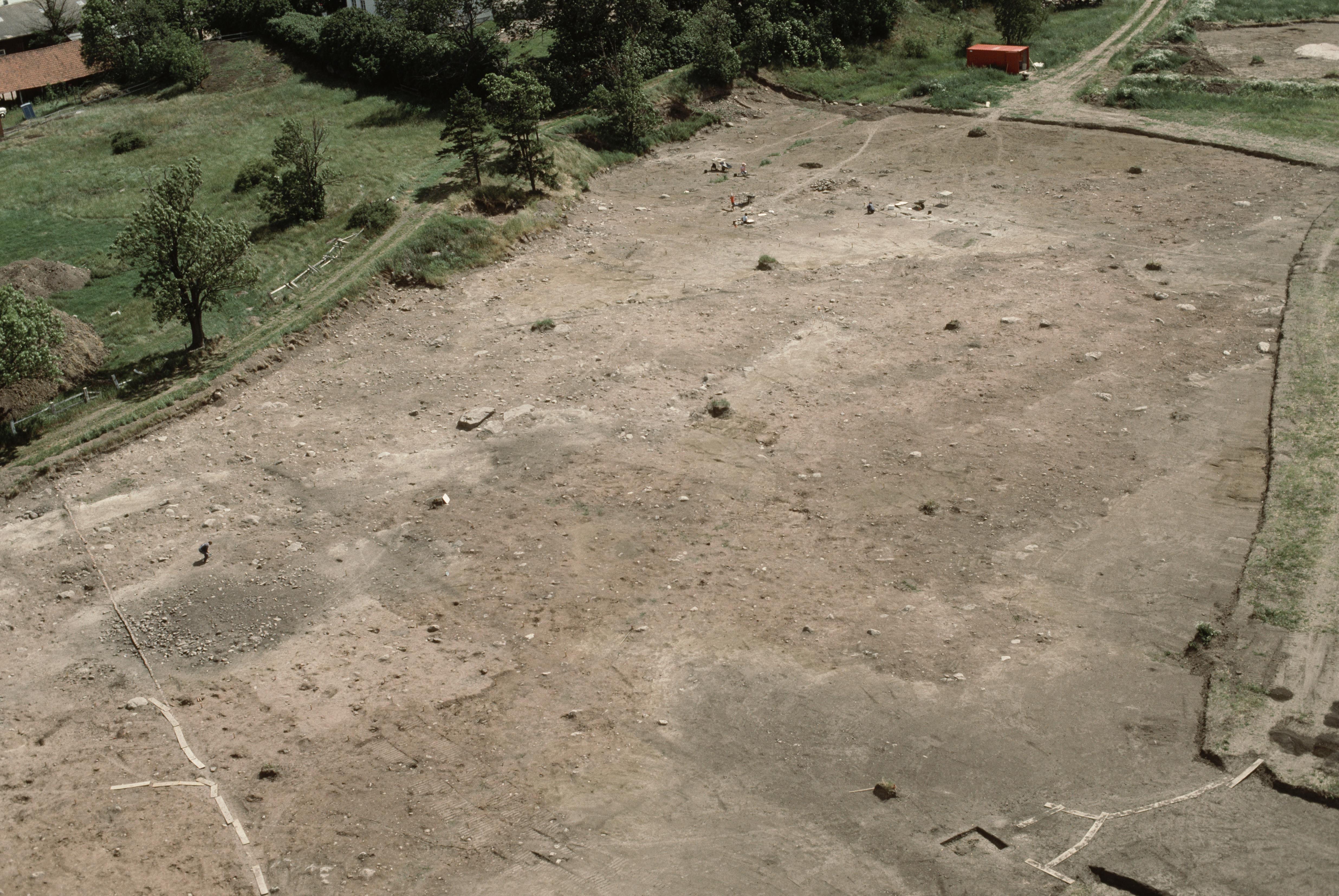 Beskrivning: Linköpings stad, stadsdelen Tornby. Arkeologisk undersökning innan bygging av vägar och nya byggnader. Boplats RAÄnr Linköping 324:1 och fossil åker Linköping 464 m.fl. Bilden är tagen mot (väderstreck): SO