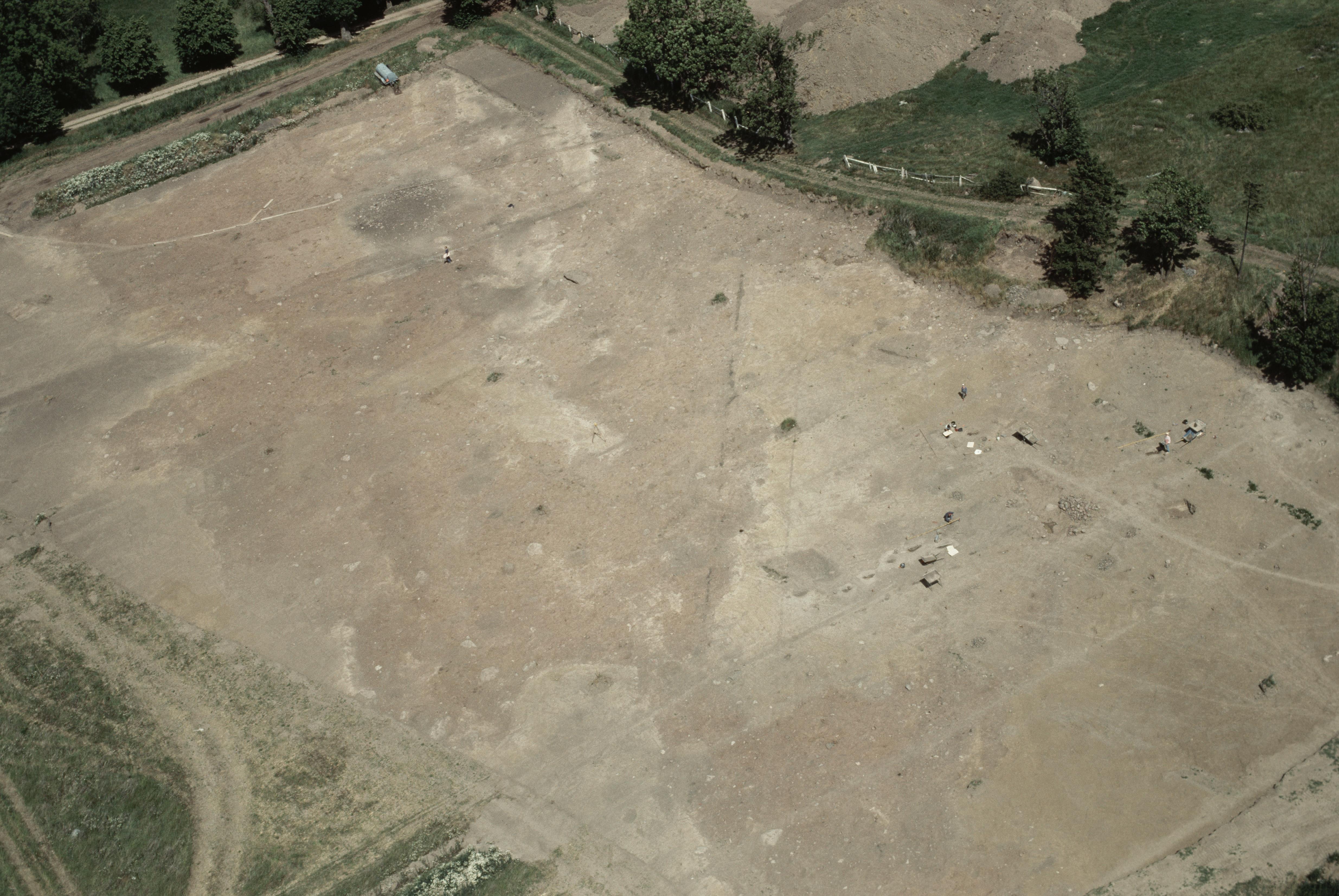 Beskrivning: Linköpings stad, stadsdelen Tornby. Arkeologisk undersökning innan bygging av vägar och nya byggnader. Boplats RAÄnr Linköping 324:1 och fossil åker Linköping 464 m.fl. Bilden är tagen mot (väderstreck): NO