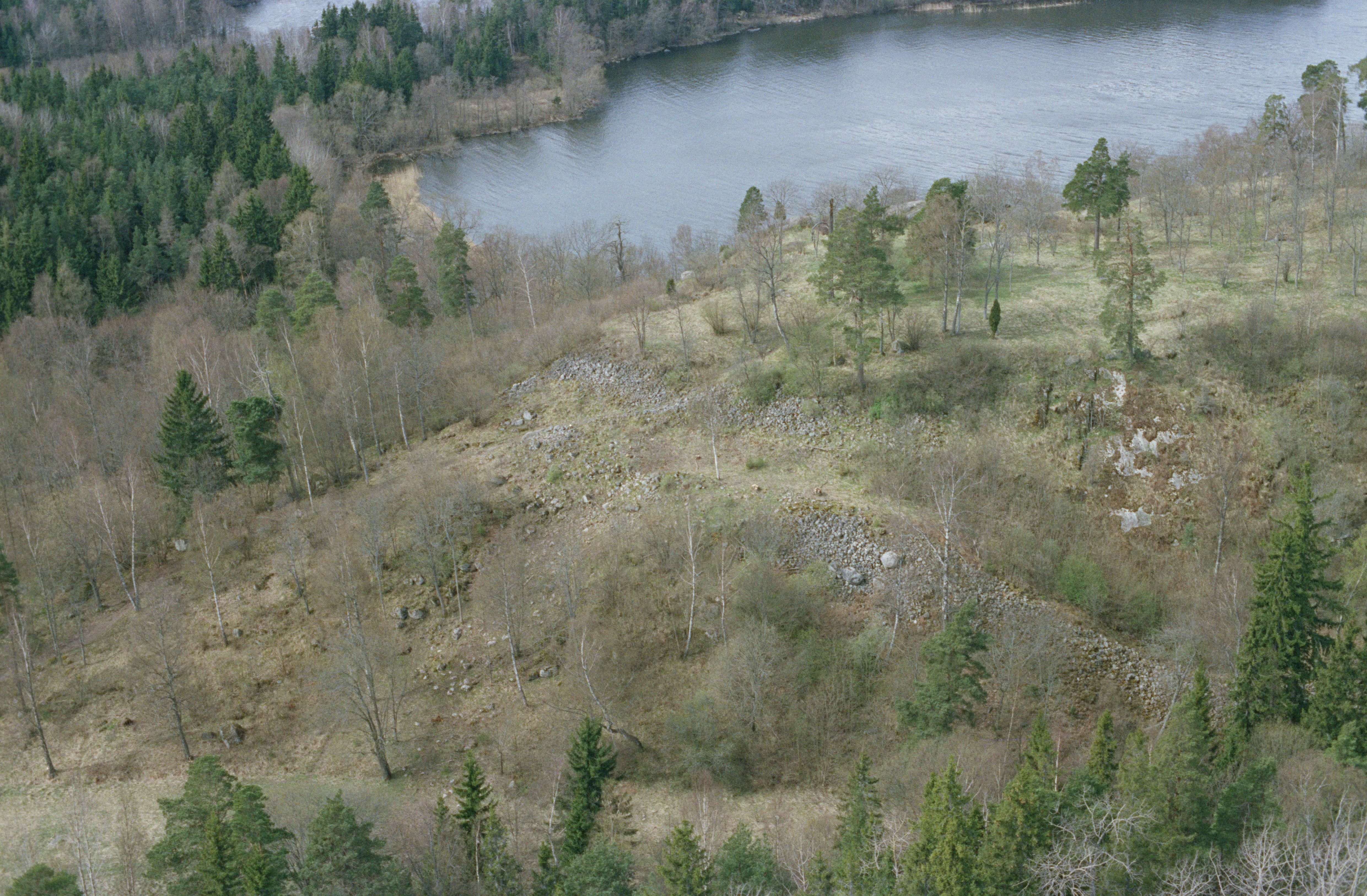 Beskrivning: Anmärkning (övrig): Riksintresse-nr/namn: AB72 - Runsa. Socken: Ed. Motivering: Herrgårdslandskap med ursprung i en stormannagård från yngre järnåldern, vid strategiskt läge mellan flera viktiga vattenleder in mot Uppsala och med en herrgårdsanläggning som speglar högadelns levnadsförhållanden under främst stormaktstiden. (Fornlämningsmiljö). - Uttryck för riksintresset: Farledsanknuten fornborg med ovanligt kraftiga stenvallar, husgrundsterrasser och ett par gravfält med stora gravanläggningar, bl.a. en "kungshög" och en stor skeppssättning. Runsa herrgård med huvudbyggnad från 1663-73 ritad av J de la Vallée, park och ekonomibyggnader. Det av godsdriften präglade landskapet med stora, öppna odlingsmarker, al(…) Texten i detta fält har förkortats vid migrering till e-arkivet. Se filbilagan extra.xml för fullständig information under note_archivist. Beskrivning: Runsa fornborg / ?Runsa borg? RAÄnr Ed 2:1. Bilden är tagen mot (väderstreck): V Fotosyfte: Flygbildsdokumentation