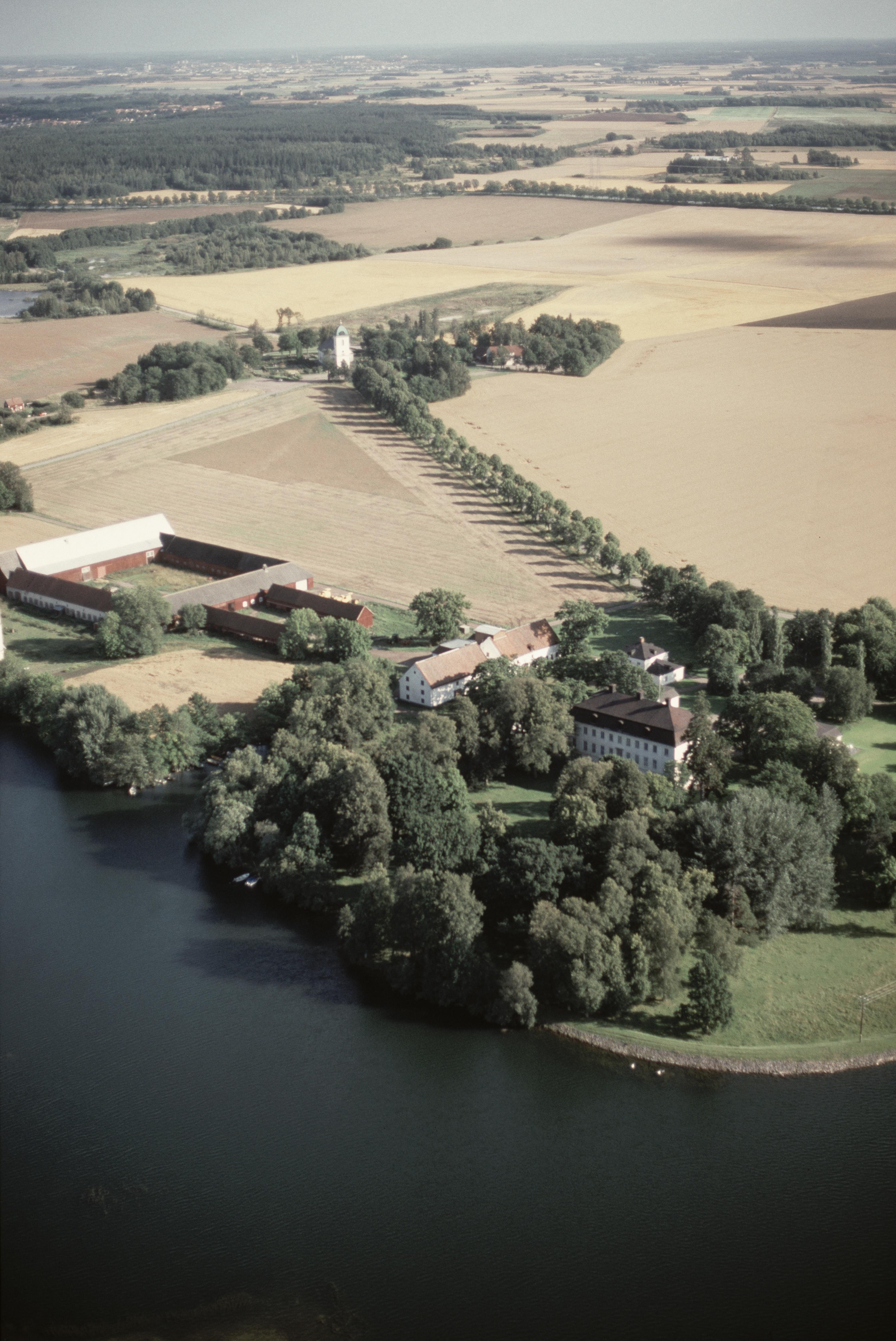 Beskrivning: Ljungs slott och Ljungs kyrka vid Ljungssjön. Bilden är tagen mot (väderstreck): SSO