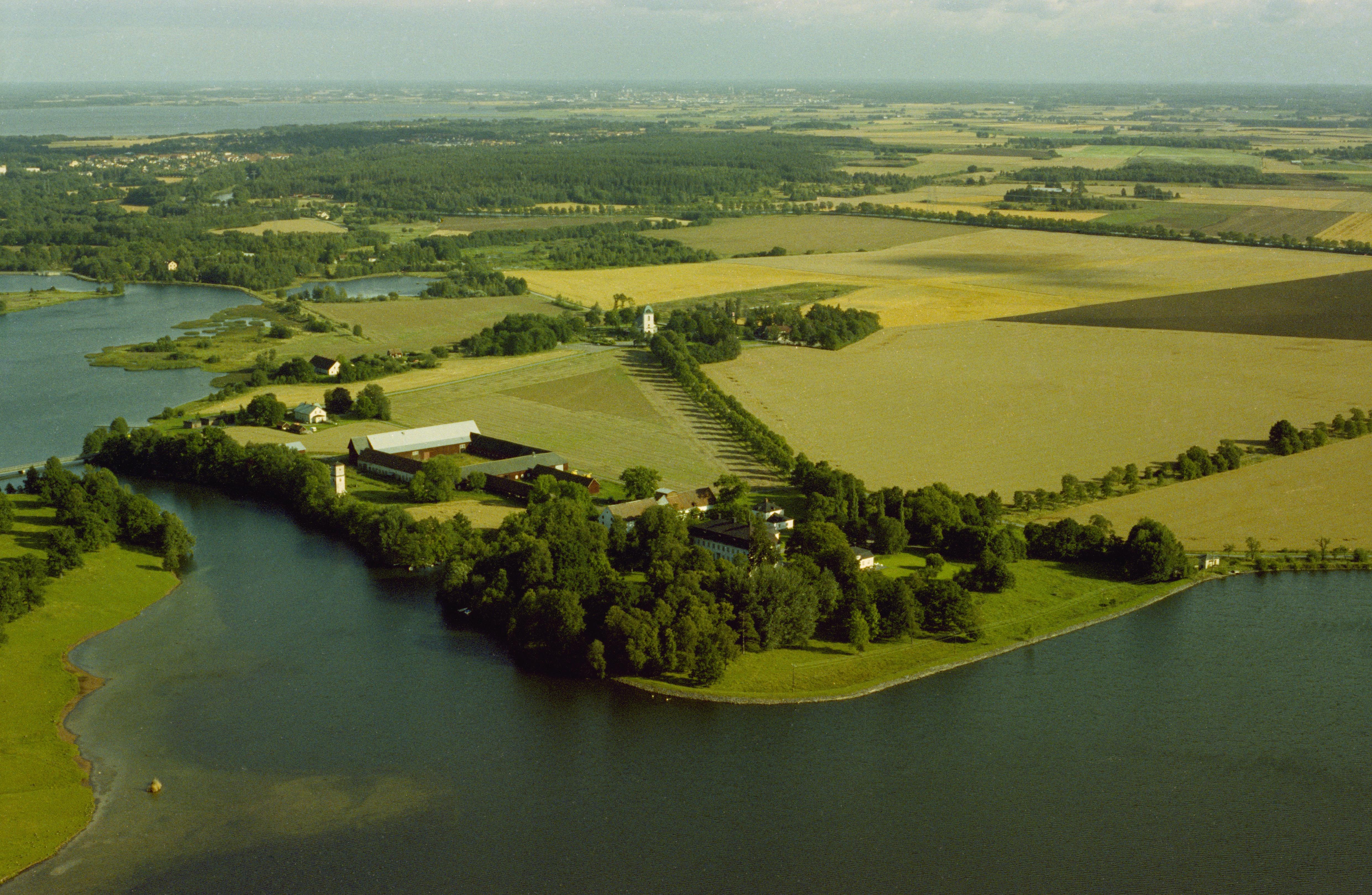 Beskrivning: Ljungs slott och Ljungs kyrka vid Ljungssjön. Bilden är tagen mot (väderstreck): SO