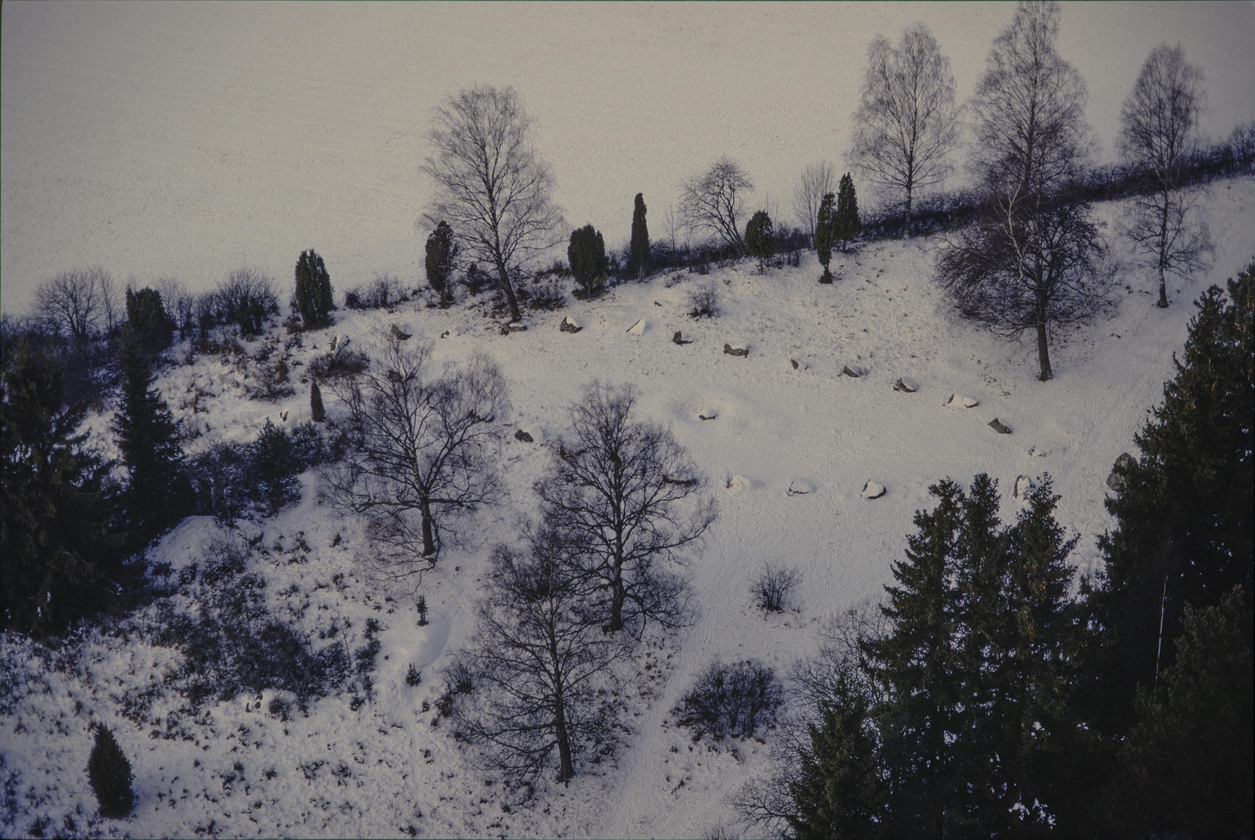 Beskrivning: Runsa gravfält med skeppssättning RAÄnr Ed 1:1. Bilden är tagen mot (väderstreck): V