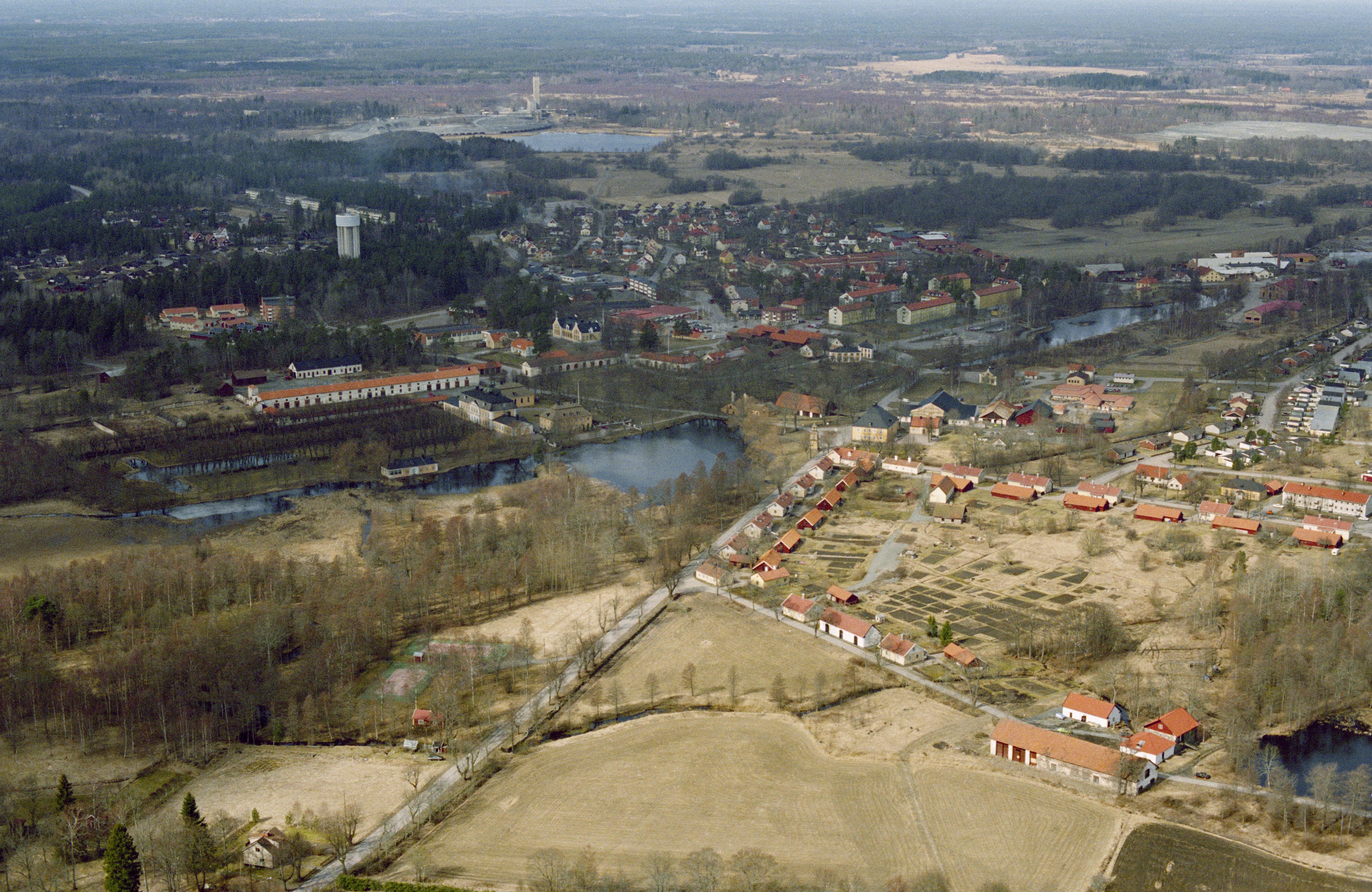 Beskrivning: Österbybruk vid Nerån och sjöarna Stordammen, Oppdammen, Sågdammen och Herrgårdsdammen. Bruksområde med herrgård och kyrka samt smedje-, kvarn-, hammar- och hyttlämningar m.m. RAÄnr Film 81:1. Bilden är tagen mot (väderstreck): NV