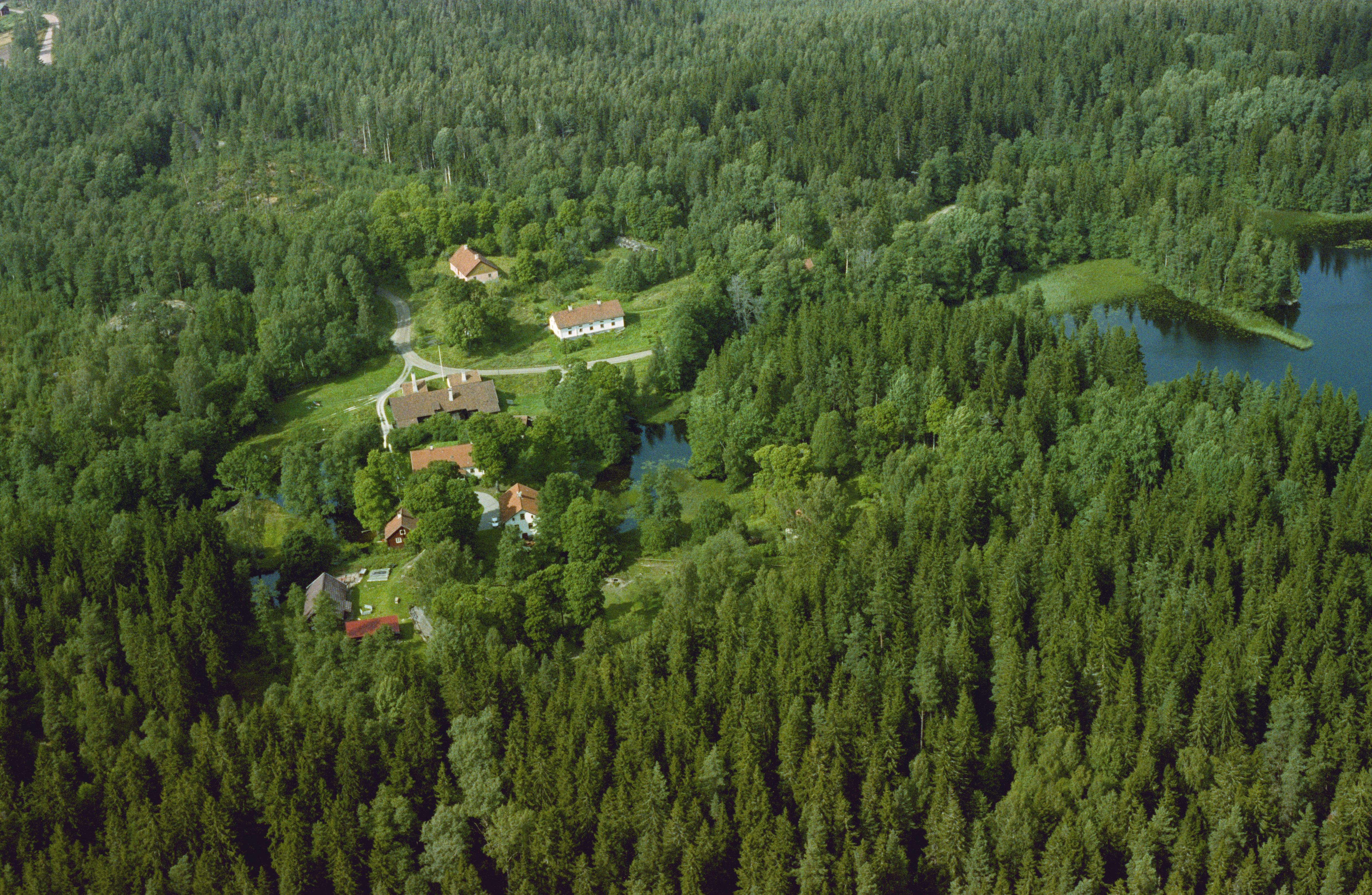 Beskrivning: Övre Hävla bruk (skrivs även Häfla hammarsmedja). Bruksbyggnader RAÄnr Skedevi 75:1. Bilden är tagen mot (väderstreck): NV
