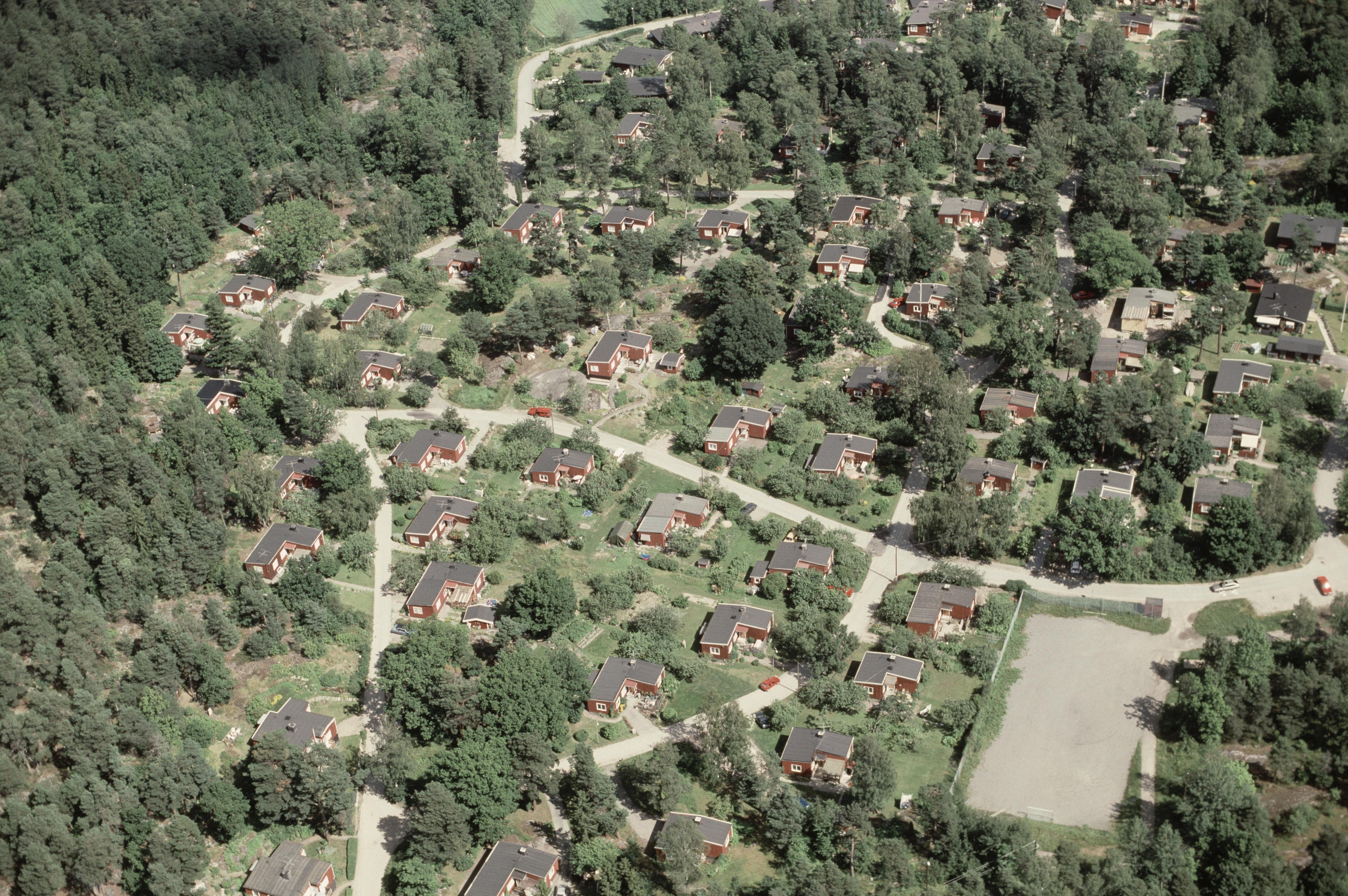 Beskrivning: Bostadsområdet Höjdhagen i Gustavsbergs tätort. Hällristning RAÄnr Gustavsberg 31:1 nere till höger. Bilden är tagen mot (väderstreck): ONO