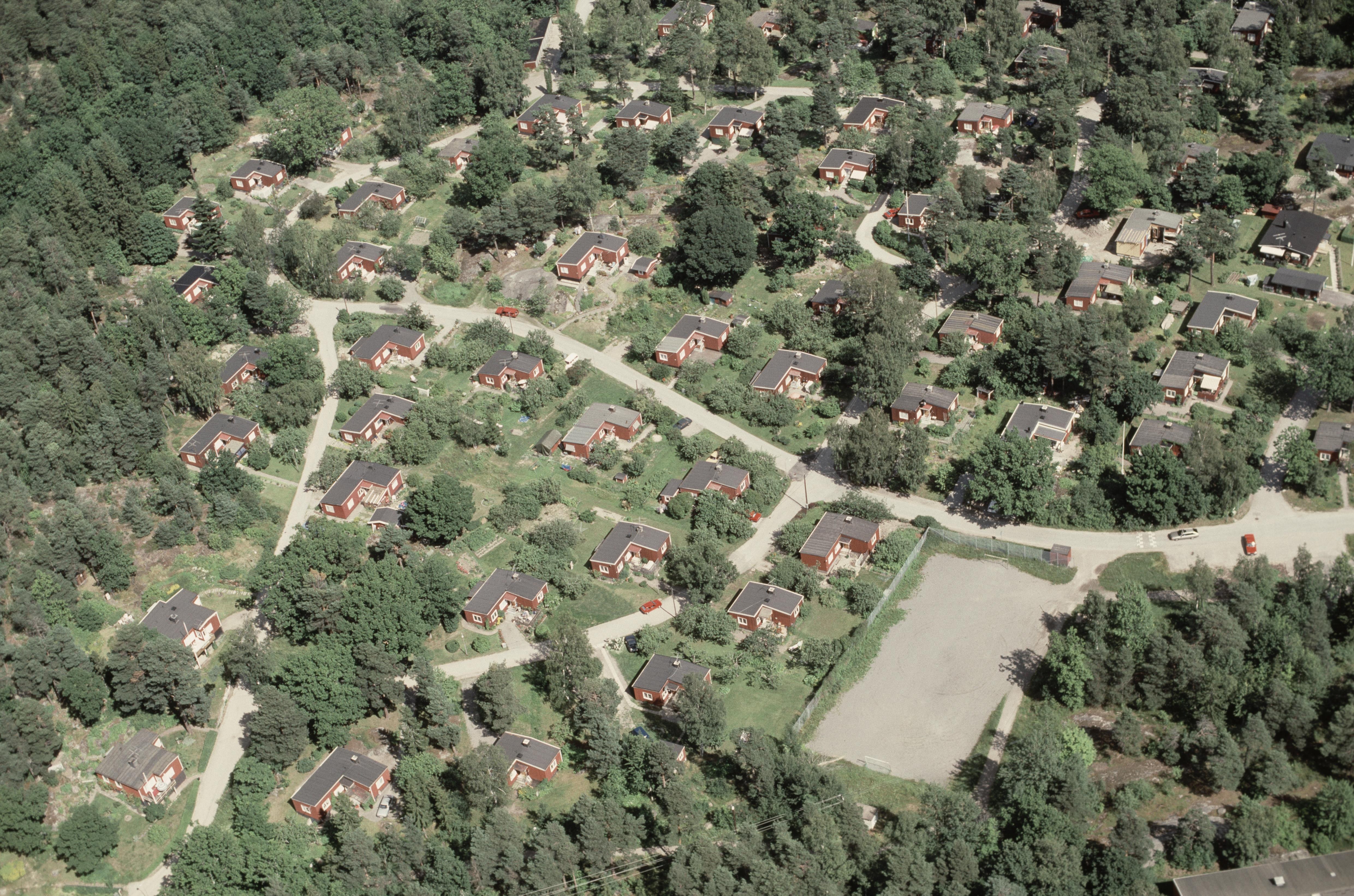 Beskrivning: Bostadsområdet Höjdhagen i Gustavsbergs tätort. Hällristning RAÄnr Gustavsberg 31:1 nere till höger. Bilden är tagen mot (väderstreck): ONO
