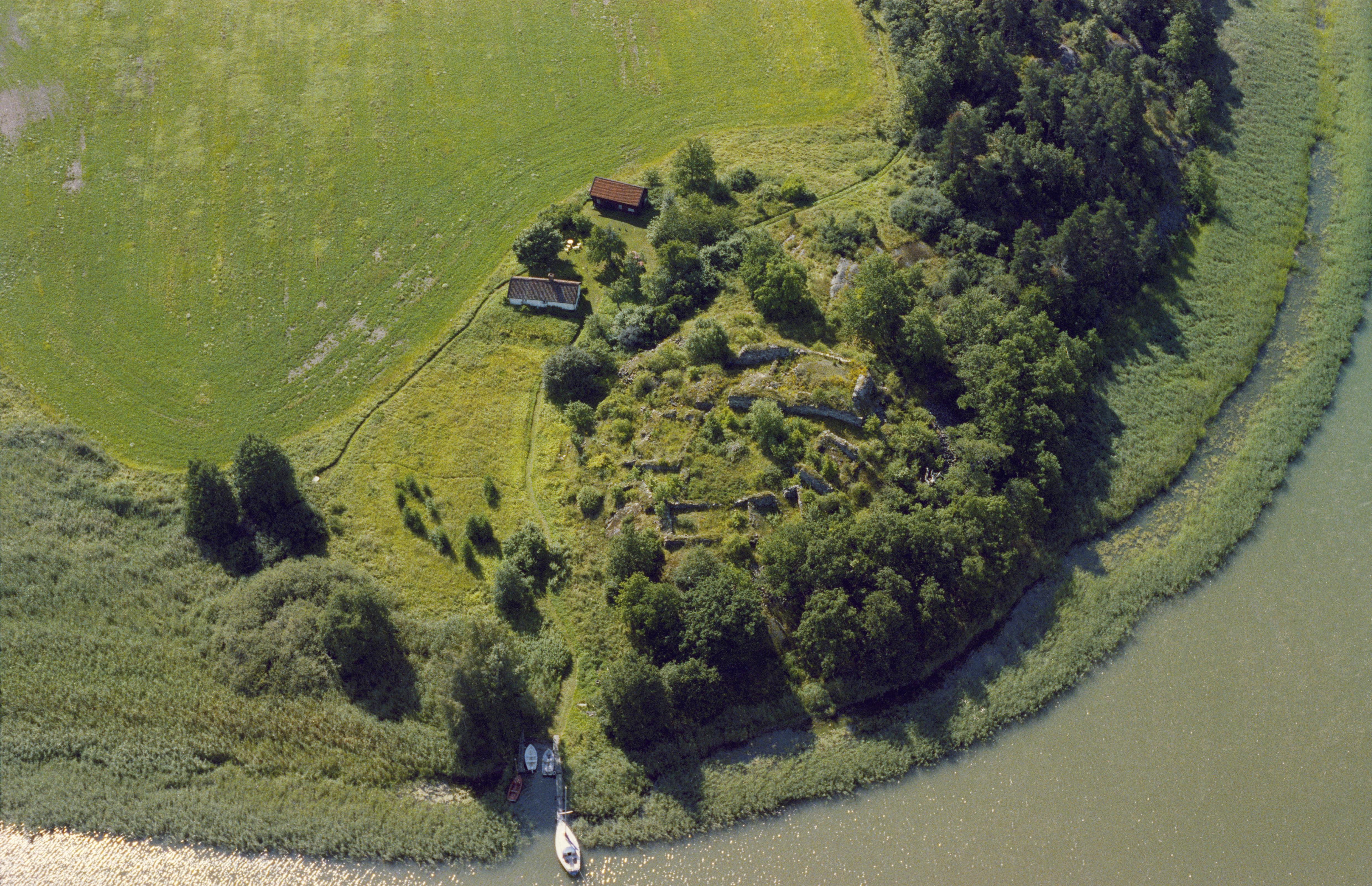 Beskrivning: Havsviken Slätbaken. Skällviks borgruin RAÄnr Skällvik 1:1 vid Yxeltorpa vik. Bilden är tagen mot (väderstreck): OSO