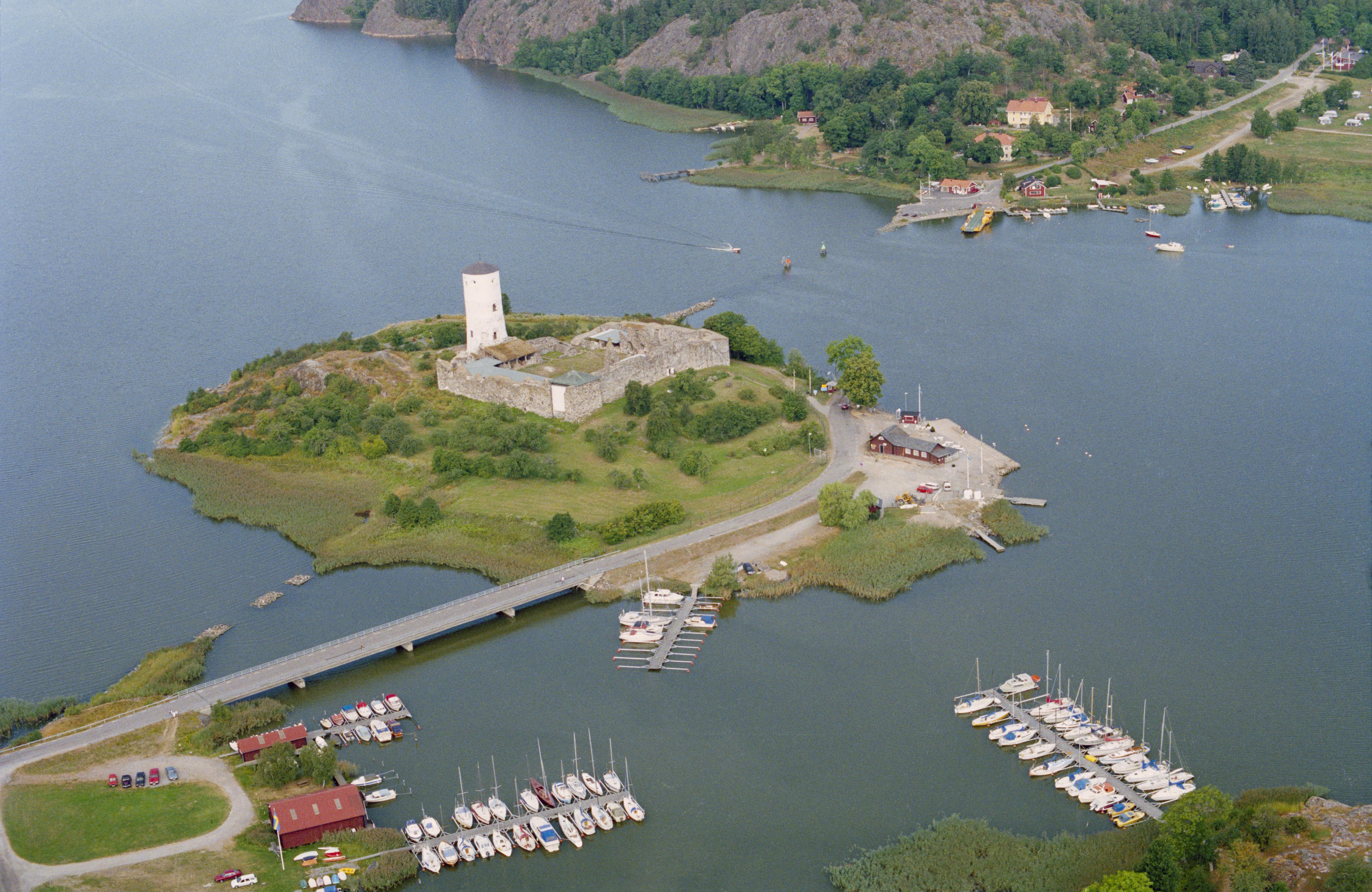 Beskrivning: Havsviken Slätbaken. Stegeborgs slottsruin RAÄnr Skällvik 222:1. Bilden är tagen mot (väderstreck): NV