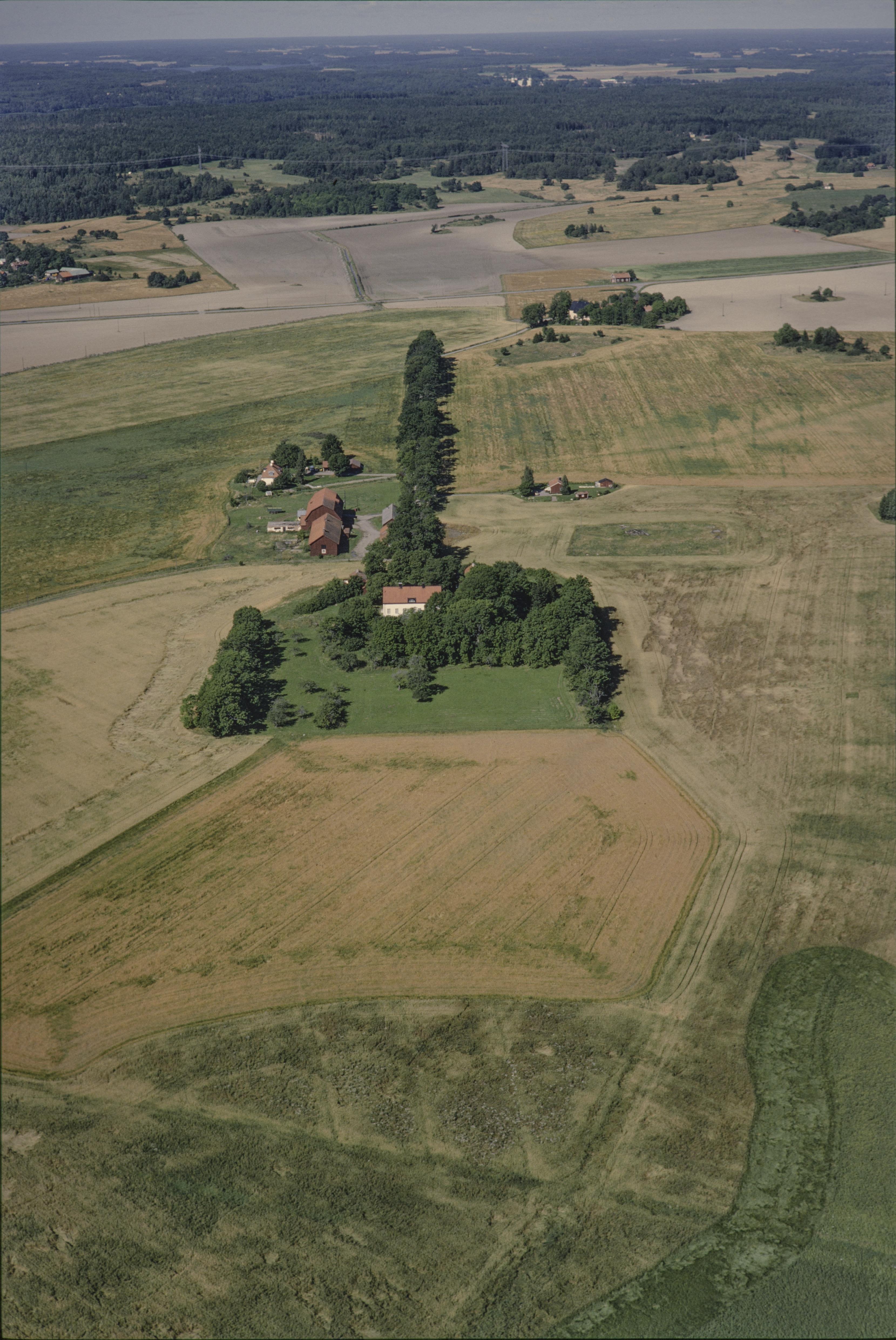 Beskrivning: Haga gård. Till höger över bildens mitt Haga kyrka. Vid kyrkan bytomt RAÄnr Haga 30:1 och 58:1, Bilden är tagen mot (väderstreck): NV