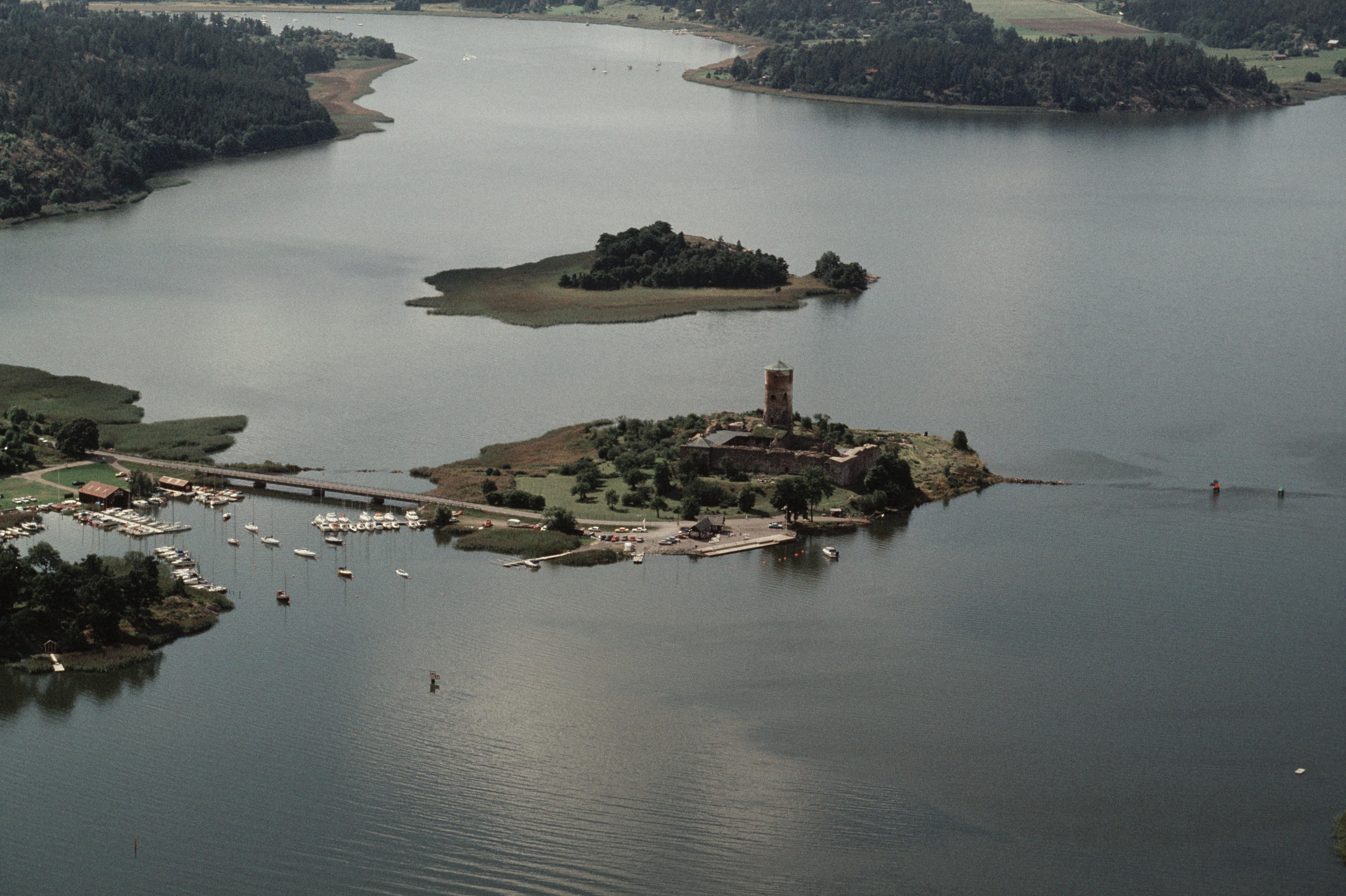Beskrivning: Havsviken Slätbaken. Stegeborgs slottsruin RAÄnr Skällvik 222:1. Bilden är tagen mot (väderstreck): SV