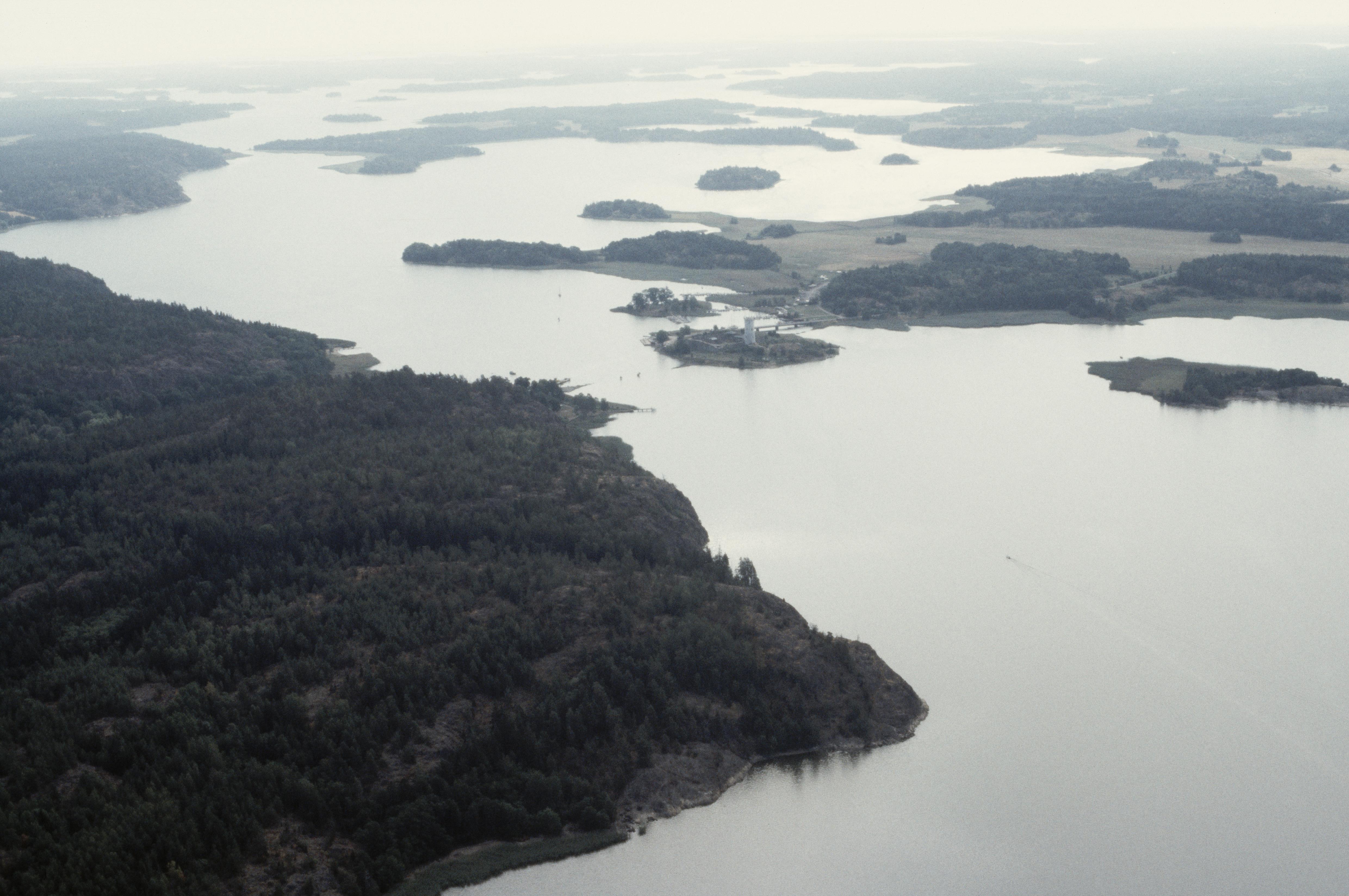 Beskrivning: Havsviken Slätbaken. Norrkrogs naturreservat och stensättning RAÄnr Östra Ny 4:1 nere till vänster. Vid bildens mitt Stegeborgs slottsruin RAÄnr Skällvik 222:1 i Skällviks socken. Bilden är tagen mot (väderstreck): OSO