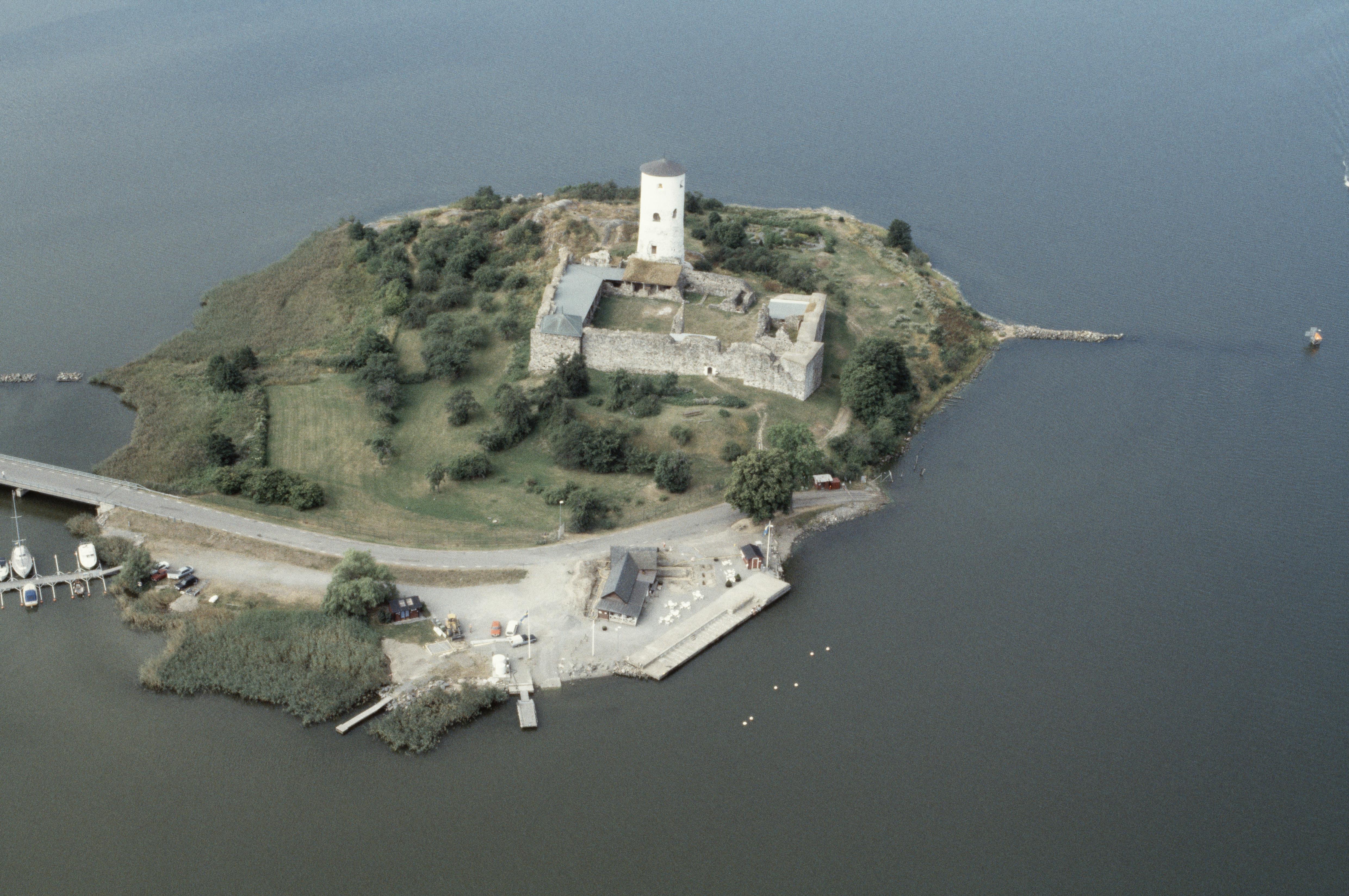 Beskrivning: Havsviken Slätbaken. Stegeborgs slottsruin RAÄnr Skällvik 222:1. Bilden är tagen mot (väderstreck): VSV