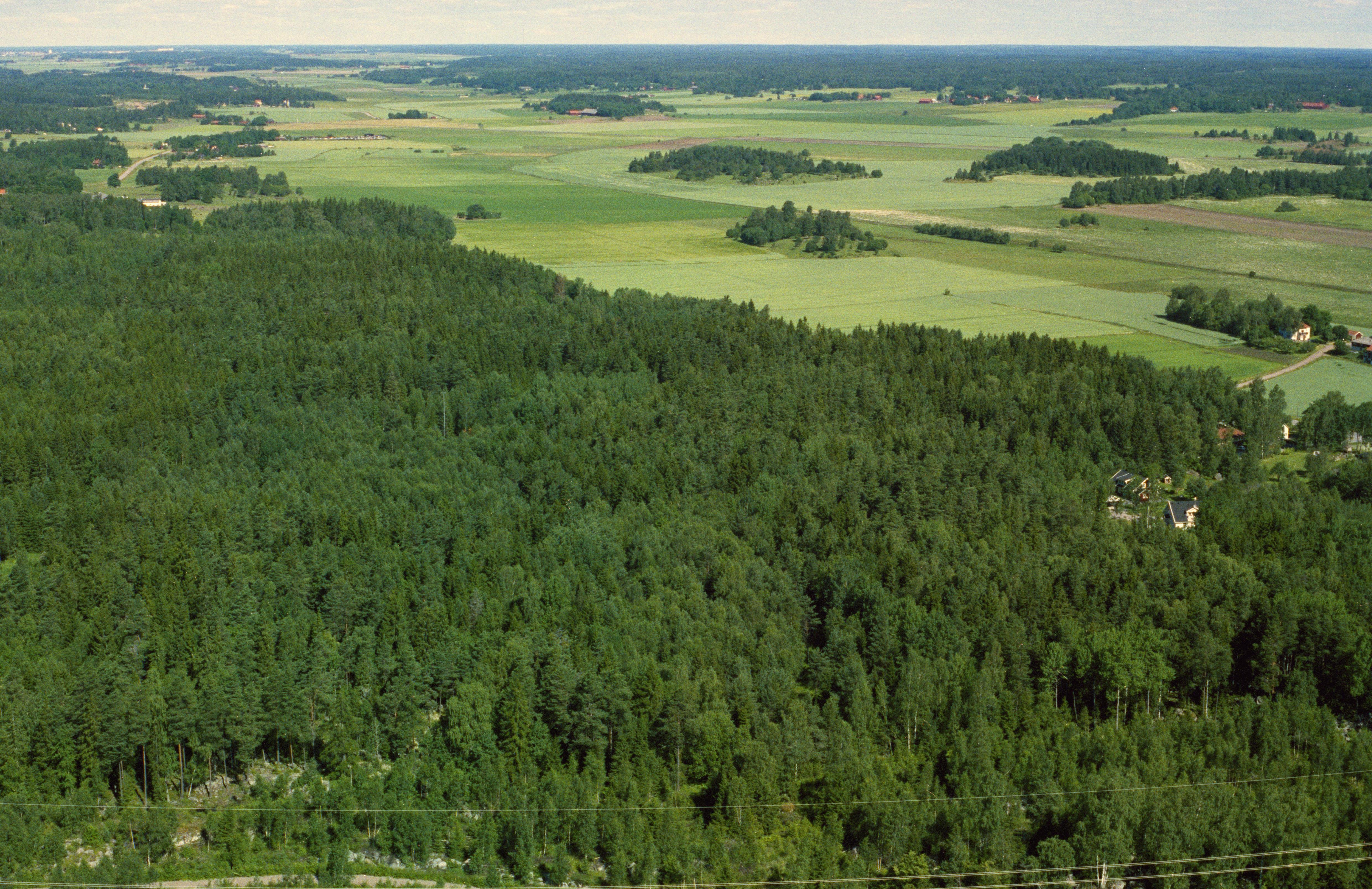 Beskrivning: Långhundraleden mellan Källström (bildens nedre del) i Husby-Långhundra socken och Tisslinge i Östuna socken (bildens övre del). Vid bildens mitt gravfält RAÄnr Husby-Långhundra 160:1. 161:1, 227:1 m.fl. I bildens högra kant Örnslunds gård. Bilden är tagen mot (väderstreck): NV