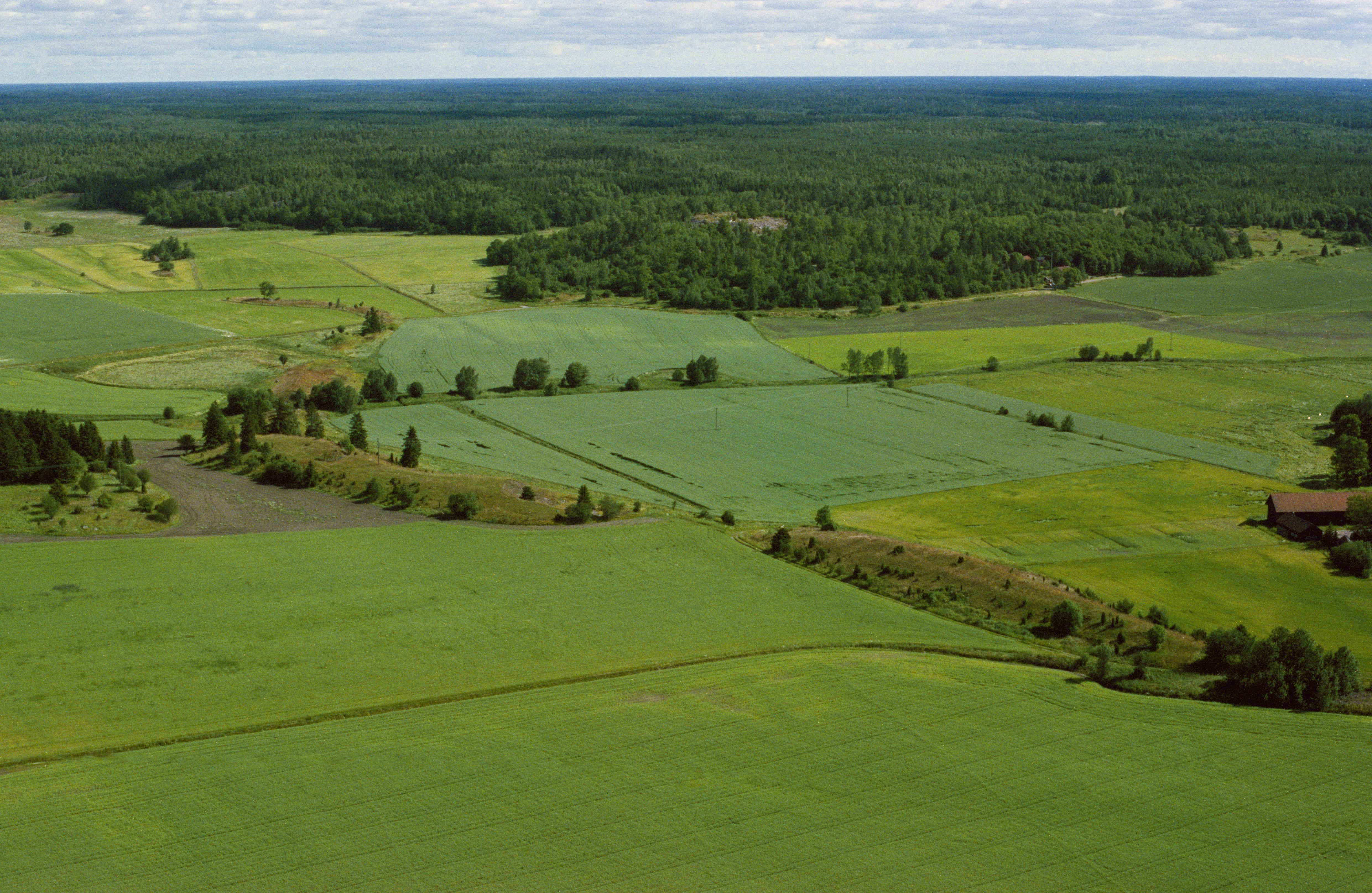 Beskrivning: Storån i Långhundraleden. I bildens nedre del stensättning och gravfält Vallby vallar RAÄnr Husby-Långhundra 158:1 och 165:1. Uppe till höger fornborgen Broborg RAÄnr Husby-Långhundra 156:1. Östuna socken i bildens nedre del. Bilden är tagen mot (väderstreck): NO