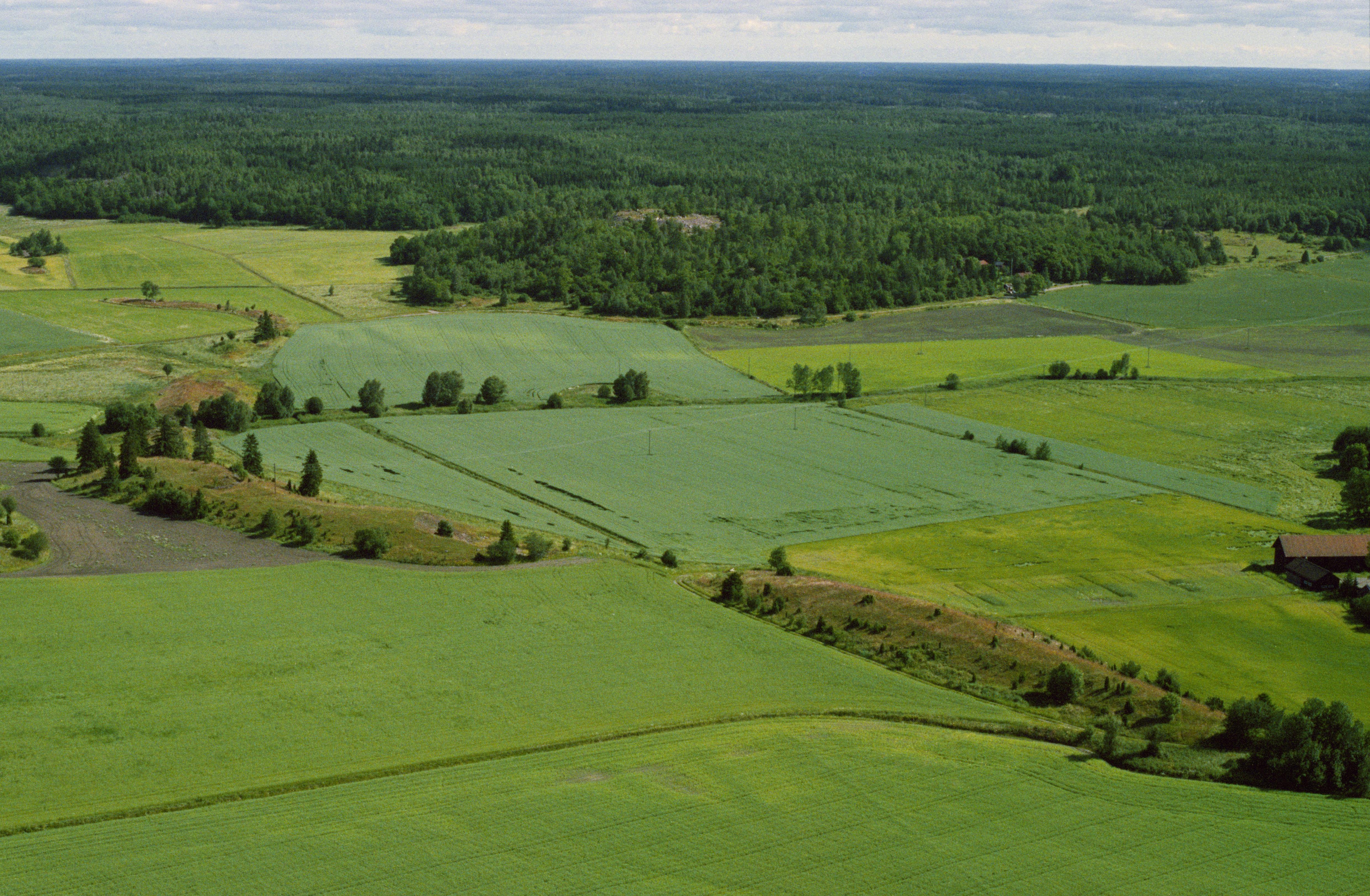 Beskrivning: Storån i Långhundraleden. I bildens nedre del stensättning och gravfält Vallby vallar RAÄnr Husby-Långhundra 158:1 och 165:1. Uppe till höger fornborgen Broborg RAÄnr Husby-Långhundra 156:1. Östuna socken i bildens nedre del. Bilden är tagen mot (väderstreck): NO