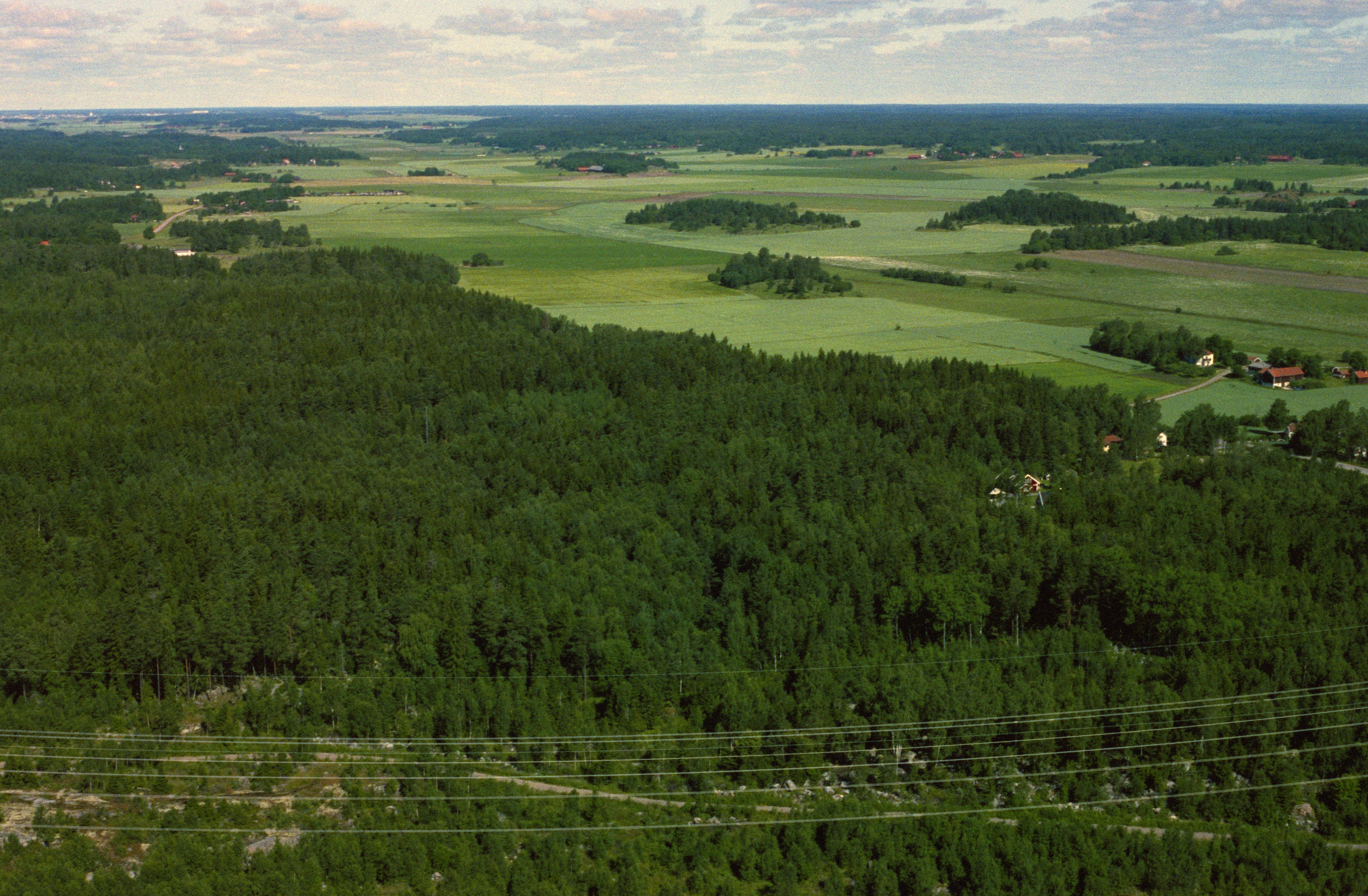Beskrivning: Långhundraleden mellan Källström (bildens nedre del) i Husby-Långhundra socken och Tisslinge i Östuna socken (bildens övre del). Vid bildens mitt gravfält RAÄnr Husby-Långhundra 160:1. 161:1, 227:1 m.fl. I bildens högra kant Örnslunds gård. Bilden är tagen mot (väderstreck): NV