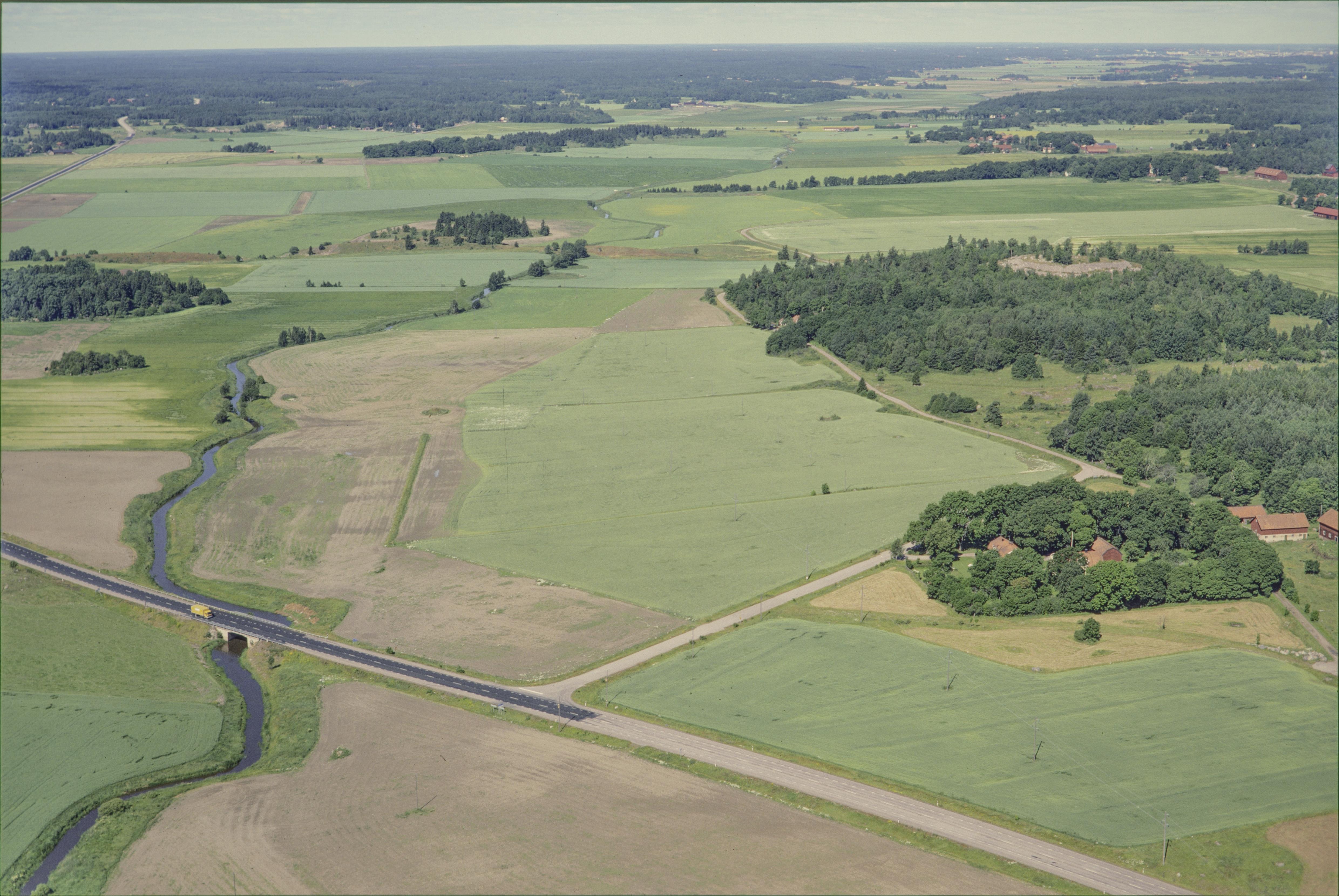 Beskrivning: Storån i Långhundraleden. Stenby gård till höger. Uppe till vänster Lilla Vallby med stensättning och gravfält Vallby vallar RAÄnr Husby-Långhundra 158:1 och 165:1 mot gränsen till Östuna socken. Till höger fornborgen Broborg RAÄnr Husby-Långhundra 156:1. Bilden är tagen mot (väderstreck): V