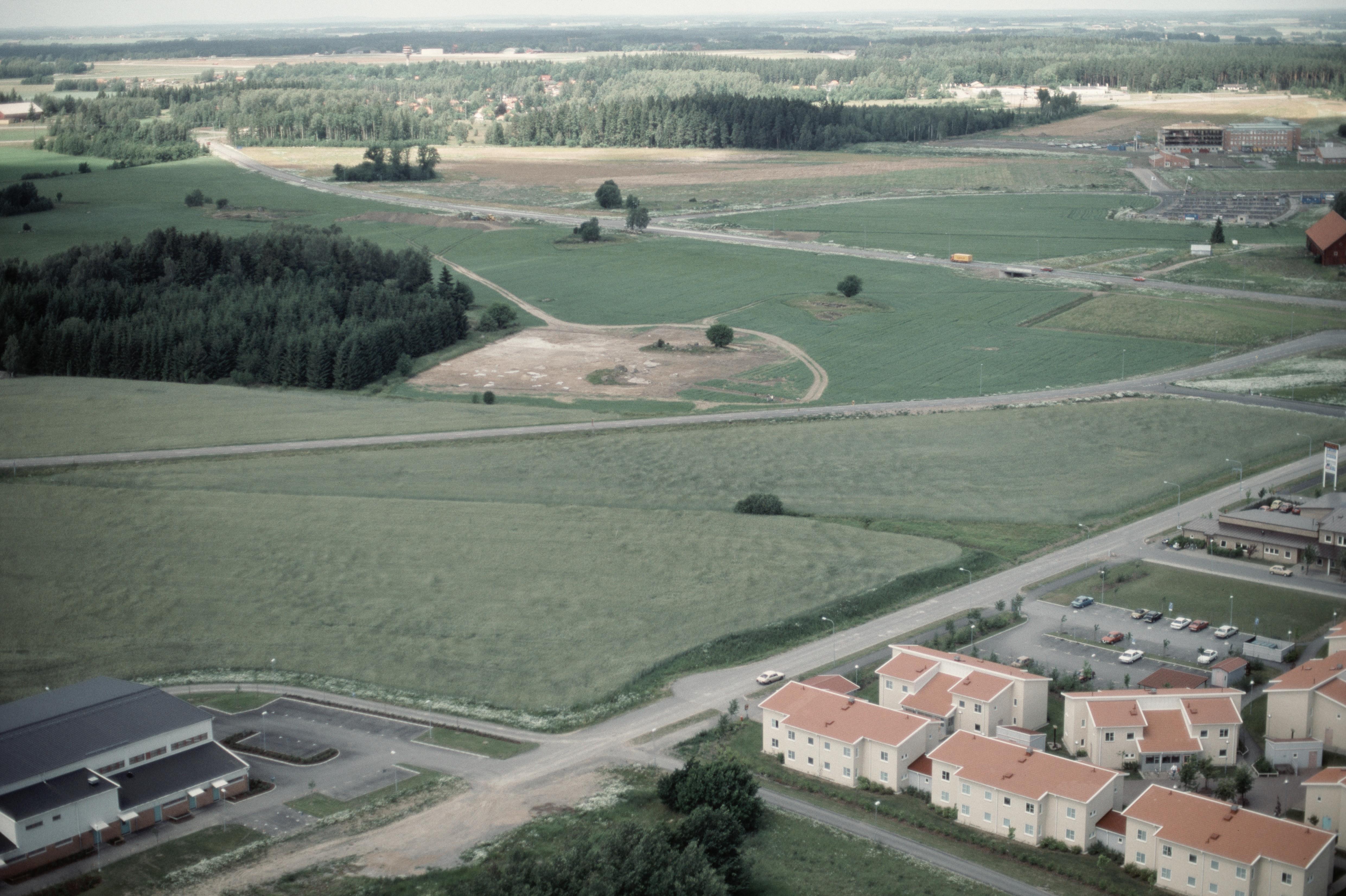 Beskrivning: I bildens övre del arkeologisk undersökning innan bostadsbygge vid Enskiftesgatan i norra delen av tätorten Lambohov. Boplats RAÄnr Slaka 251:1. Bilden är tagen mot (väderstreck): NV