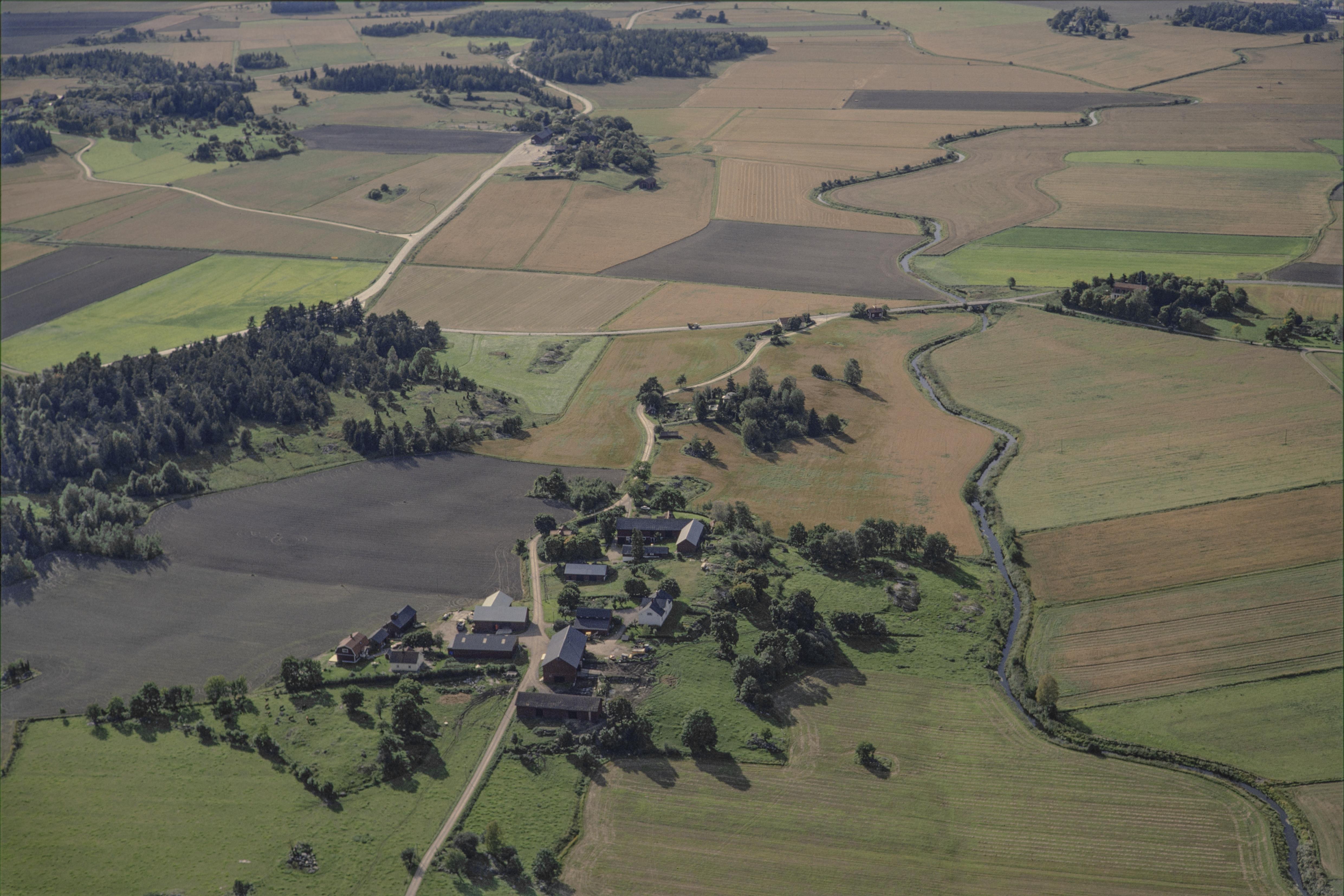 Beskrivning: Sätuna by vid Husbyån. Vid bildens mitt bytomt RAÄnr Husby-Sjuhundra 157:1. Bilden är tagen mot (väderstreck): SV