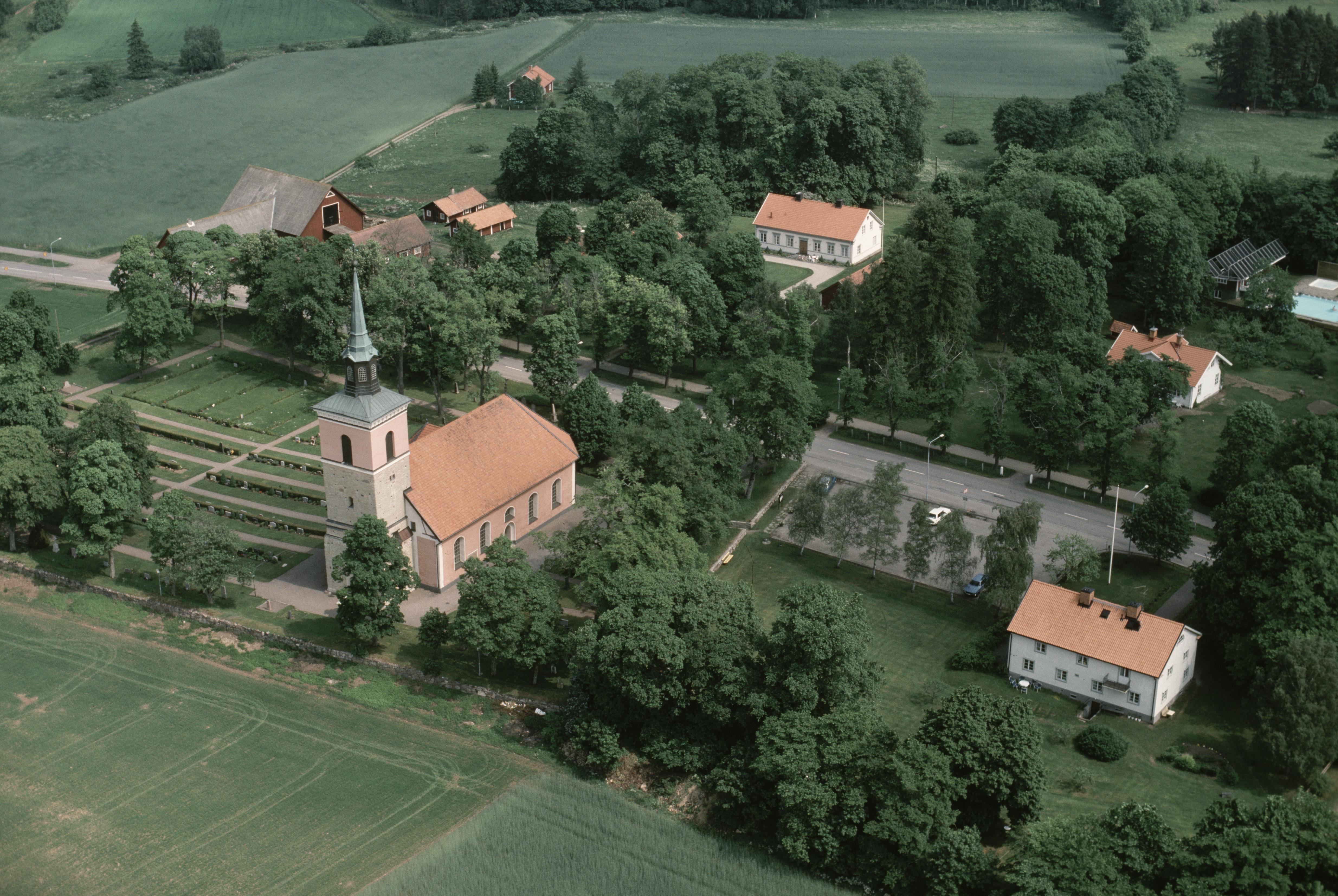 Beskrivning: Slaka kyrka / Sofia Albertina kyrka och kyrkby. Bilden är tagen mot (väderstreck): NO