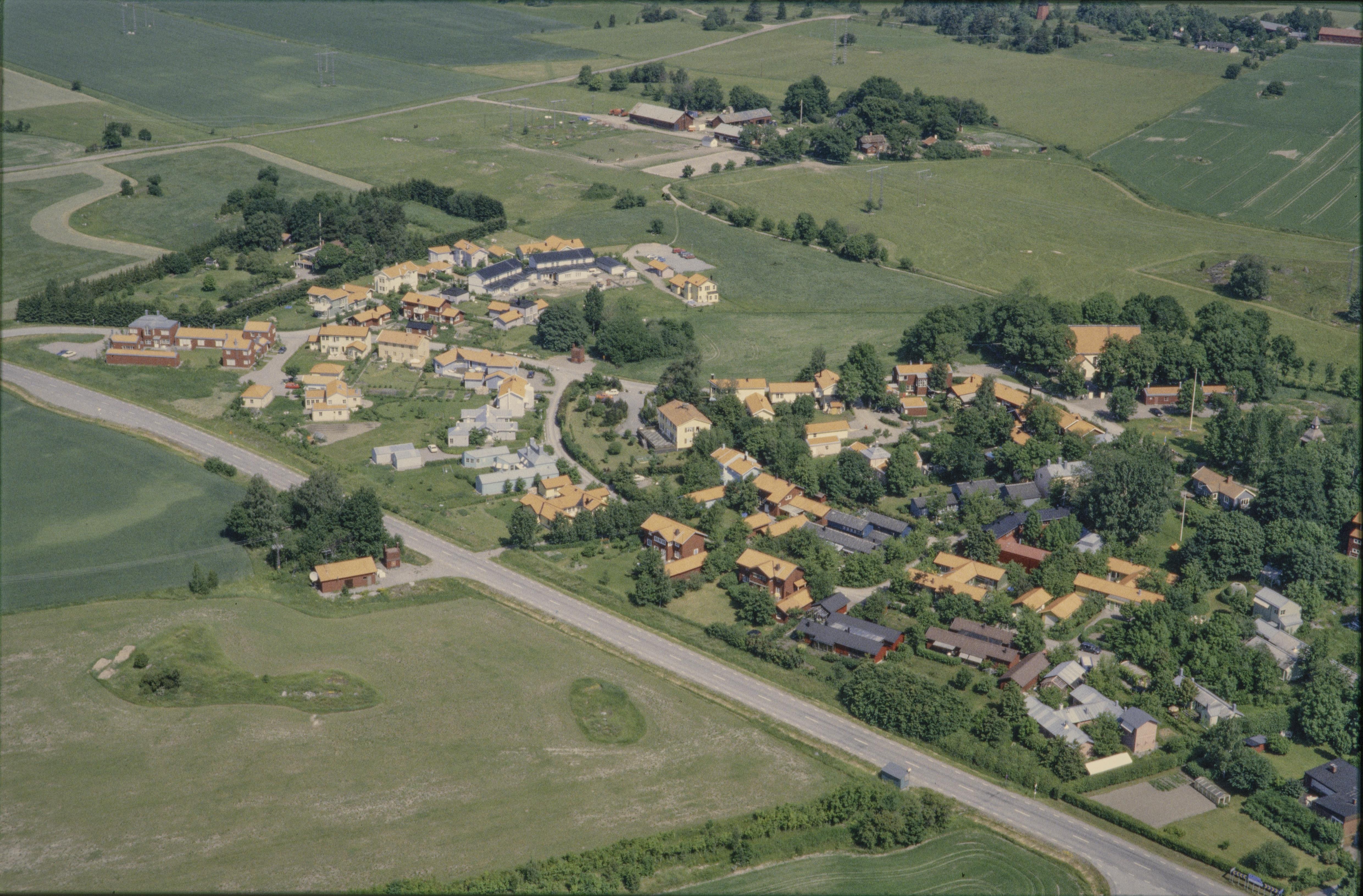 Beskrivning: Kyrkbyn. Håbo-Tibble kyrka till höger om bildens mitt. Bilden är tagen mot (väderstreck): NNV