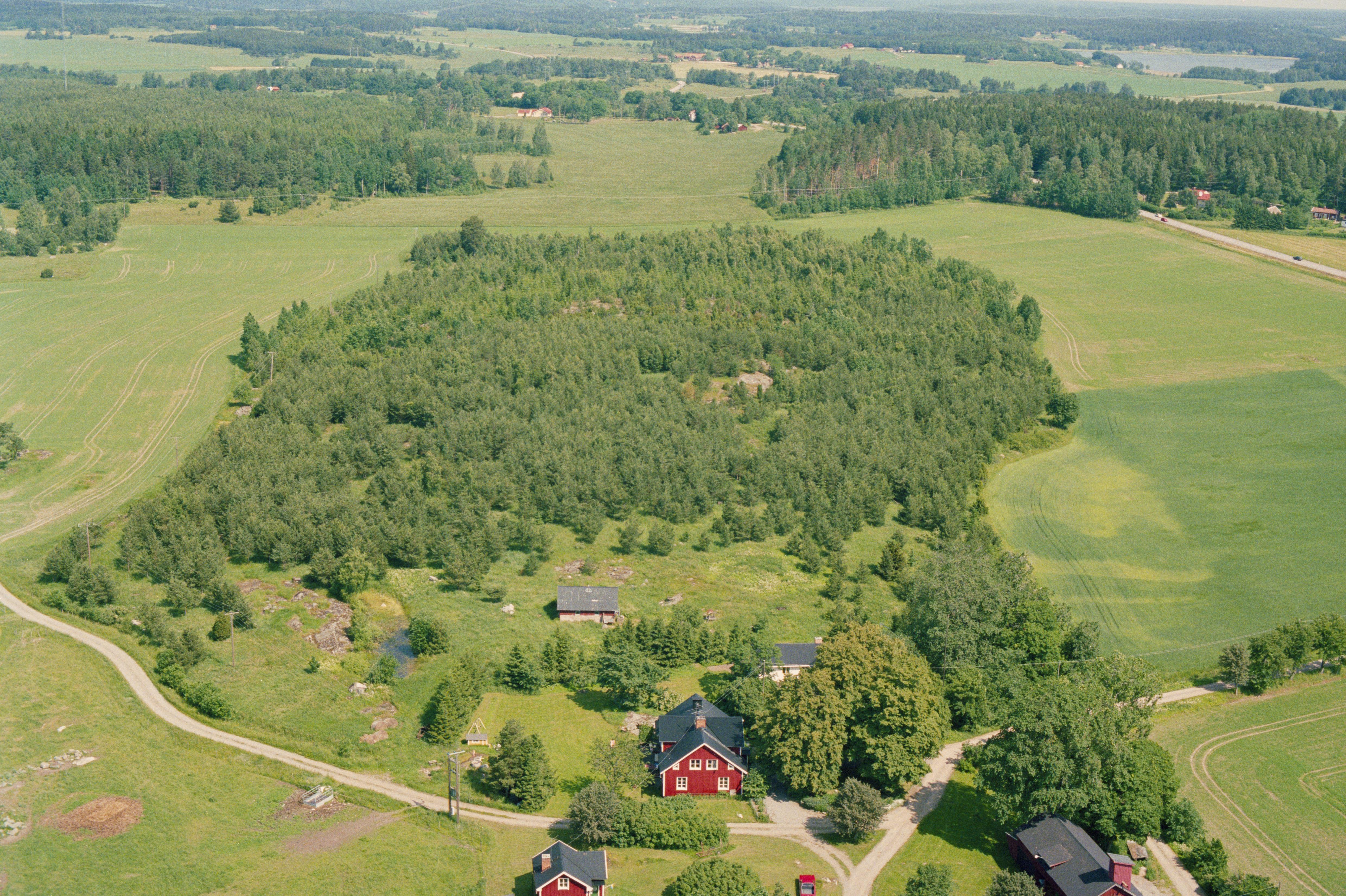 Beskrivning: Killinge gård. I bildens övre del grav- och boplatsområde RAÄnr Håtuna 13:1. Bilden är tagen mot (väderstreck): NNV