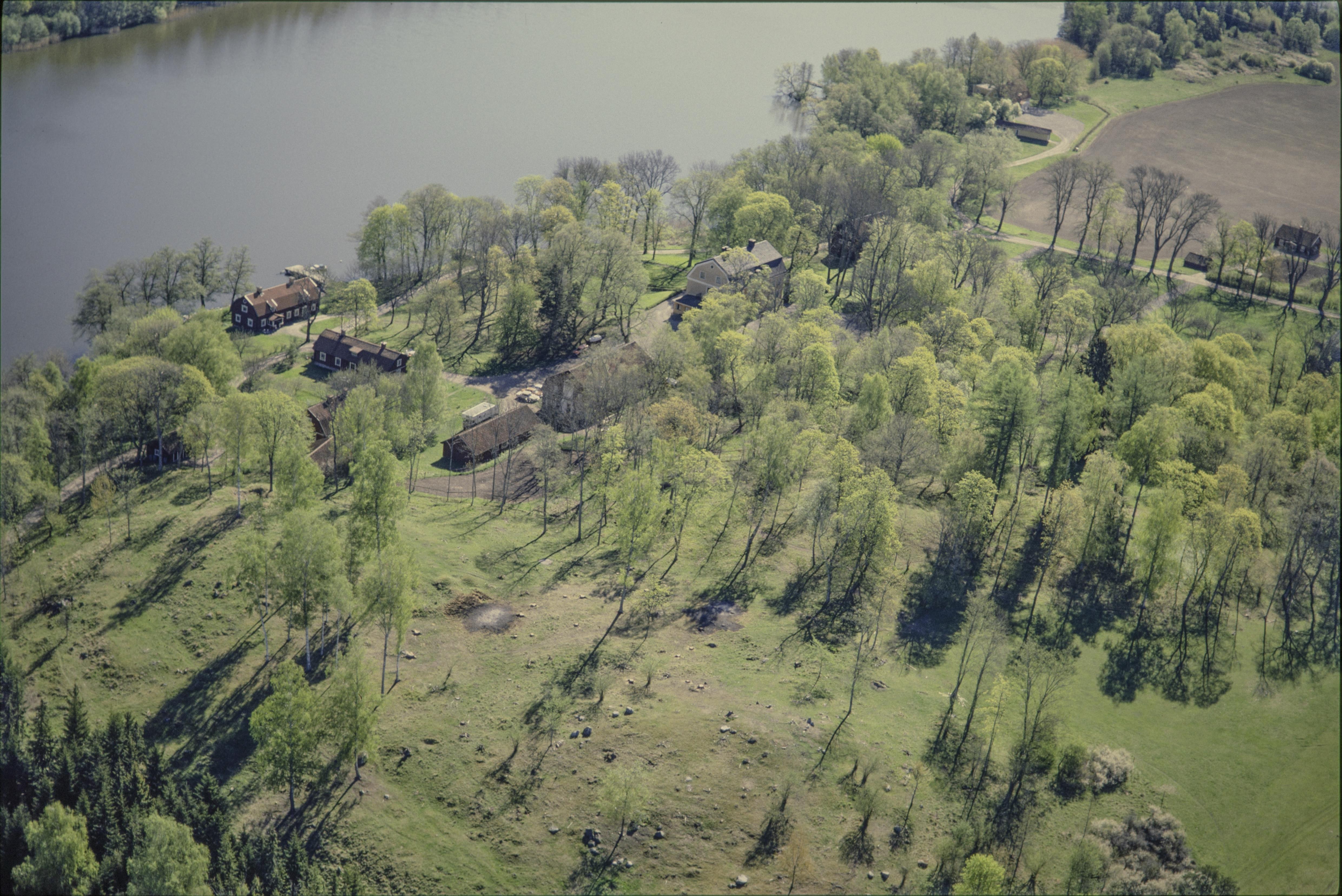 Beskrivning: Signhildsbergs kungsgård vid Håtunaviken i Mälaren. I området husgrund Fornsigtuna RAÄnr Håtuna 101:1, gravfält Håtuna 99:1, tegelindustri Håtuna 122:1 m.fl. Bilden är tagen mot (väderstreck): ONO