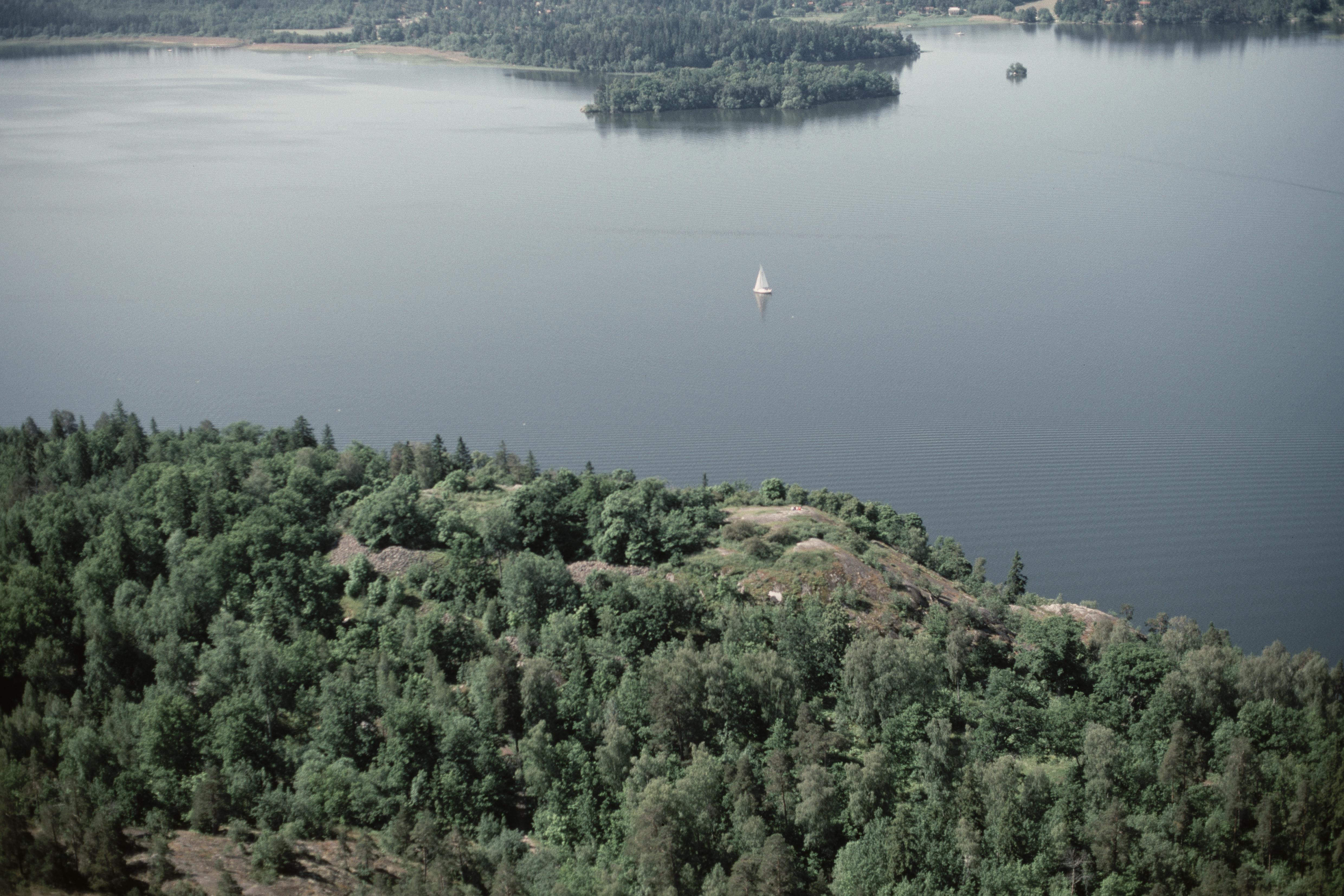 Beskrivning: Under bildens mitt fornborg Gåseborg RAÄnr Järfälla 62:1 vid Görväln i Mälaren. I bildens övre del Ricksättra och Väntholmen i socknet Hilleshög. Bilden är tagen mot (väderstreck): SV