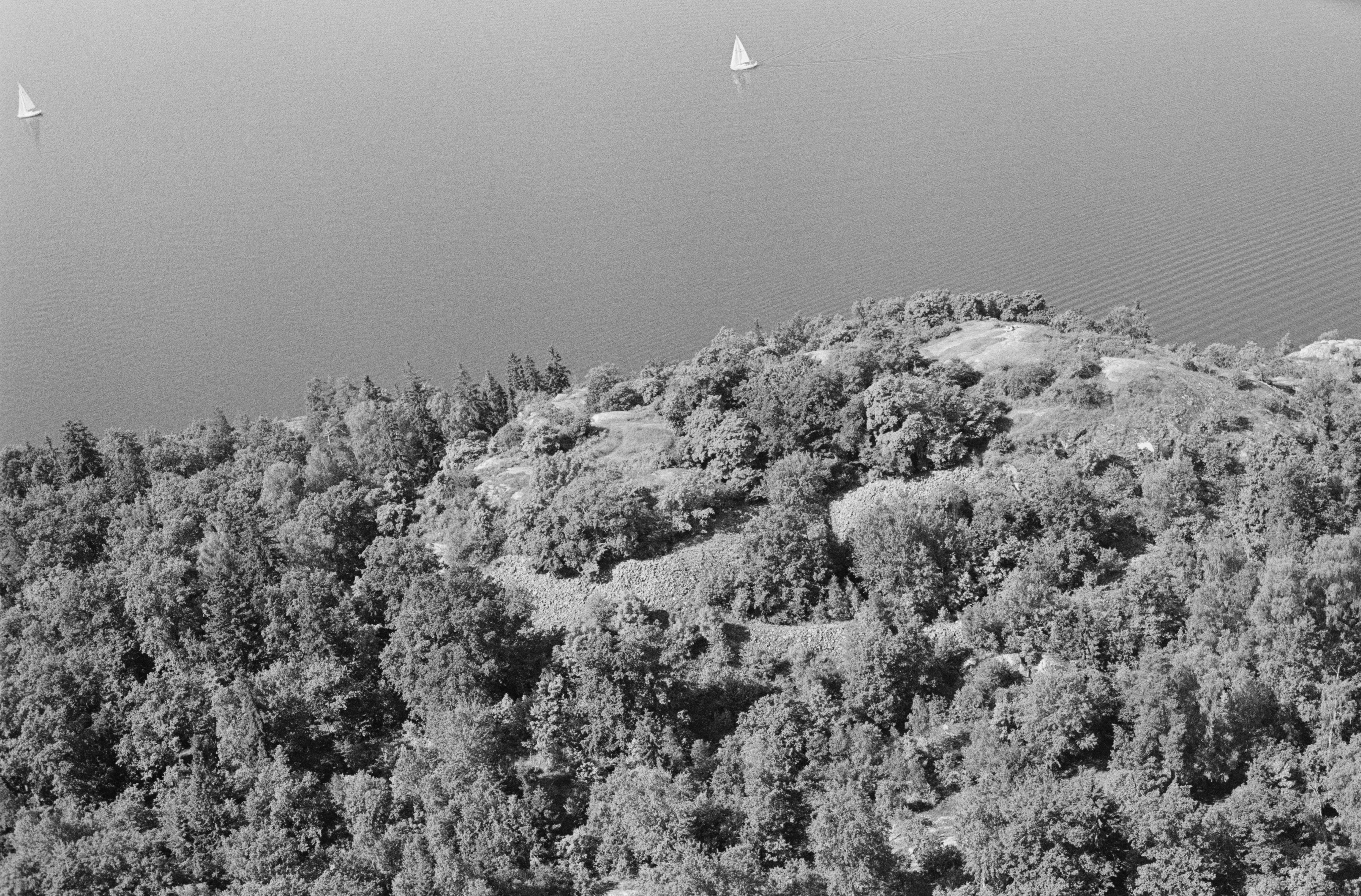 Beskrivning: I bildens mitt fornborg Gåseborg RAÄnr Järfälla 62:1 vid Görväln i Mälaren. Bilden är tagen mot (väderstreck): V
