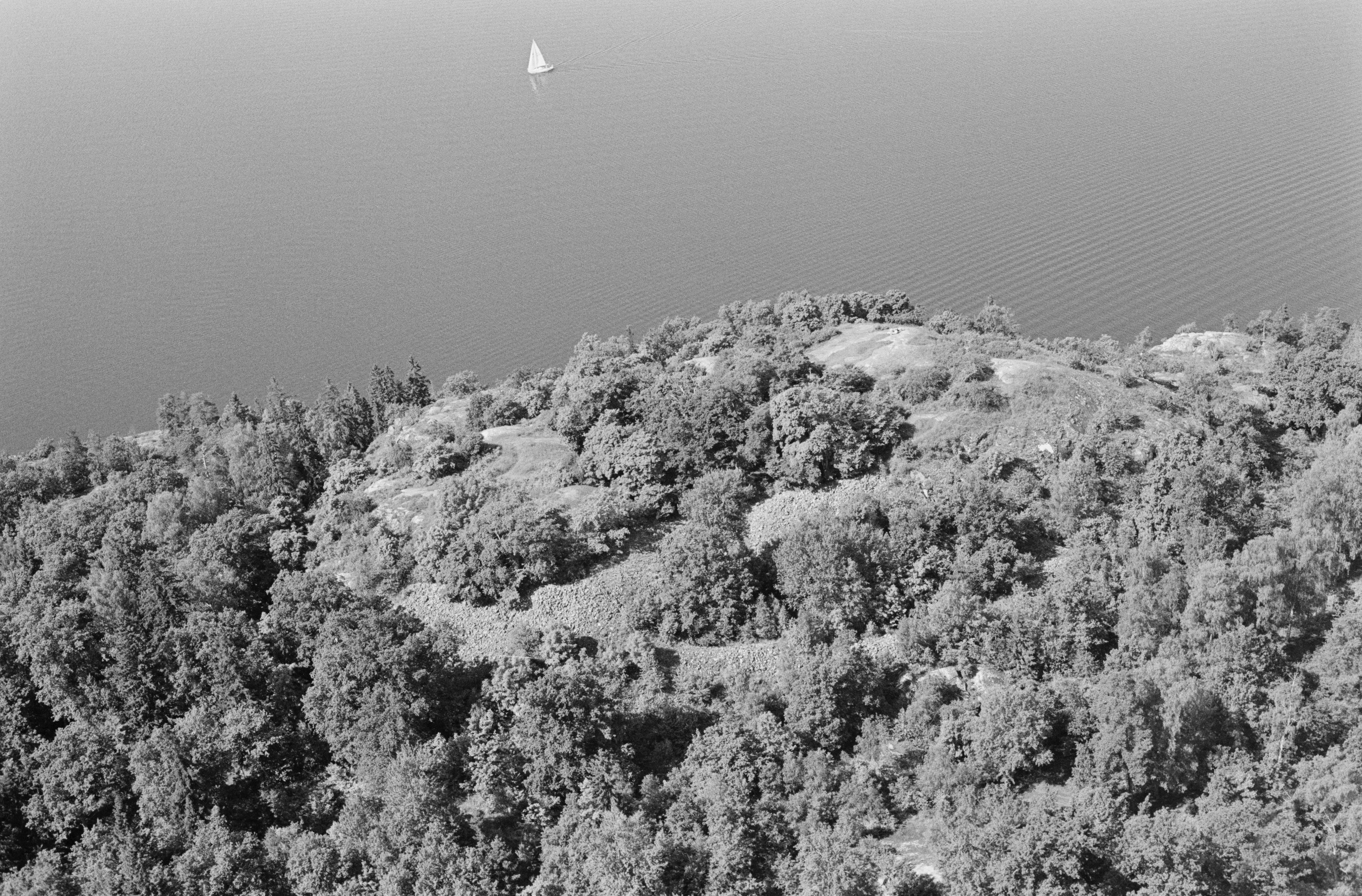 Beskrivning: I bildens mitt fornborg Gåseborg RAÄnr Järfälla 62:1 vid Görväln i Mälaren. Bilden är tagen mot (väderstreck): V