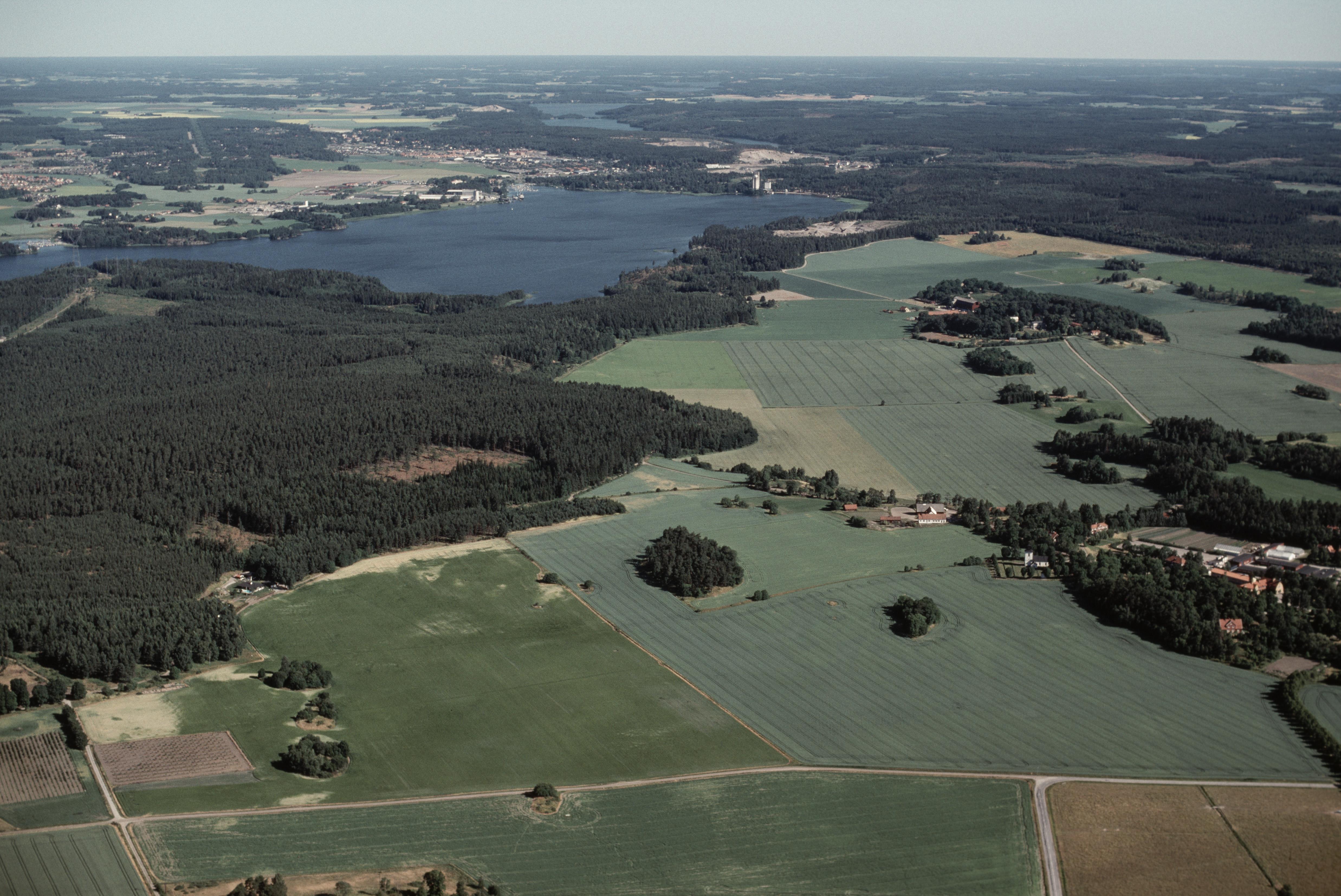 Beskrivning: Låssa kyrka till höger om bildens mitt. I bildens övre del tätorten Bålsta i Kalmar socken och Kalmarsand vid Kalmarviken i Bro socken. Håtuna socken uppe till höger. Bilden är tagen mot (väderstreck): NV