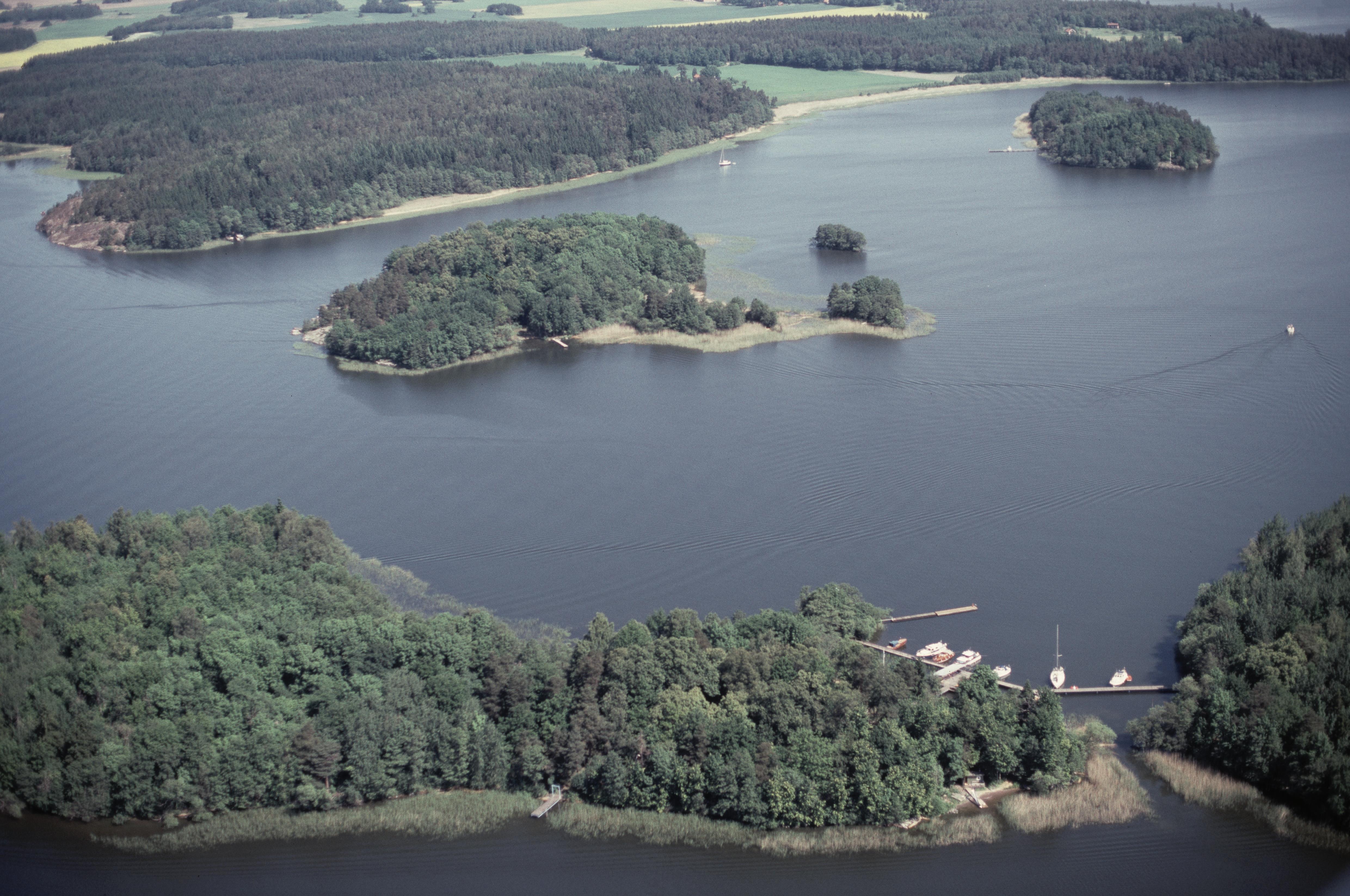 Beskrivning: Askskären i Mälaren i bildens nedre del. Uppe till vänster Klintholmen och udden mellan Brofjärden och Görväln. Uppe till höger Landholmen med röse RAÄnr Kungsängen 75:1. Bilden är tagen mot (väderstreck): NNO