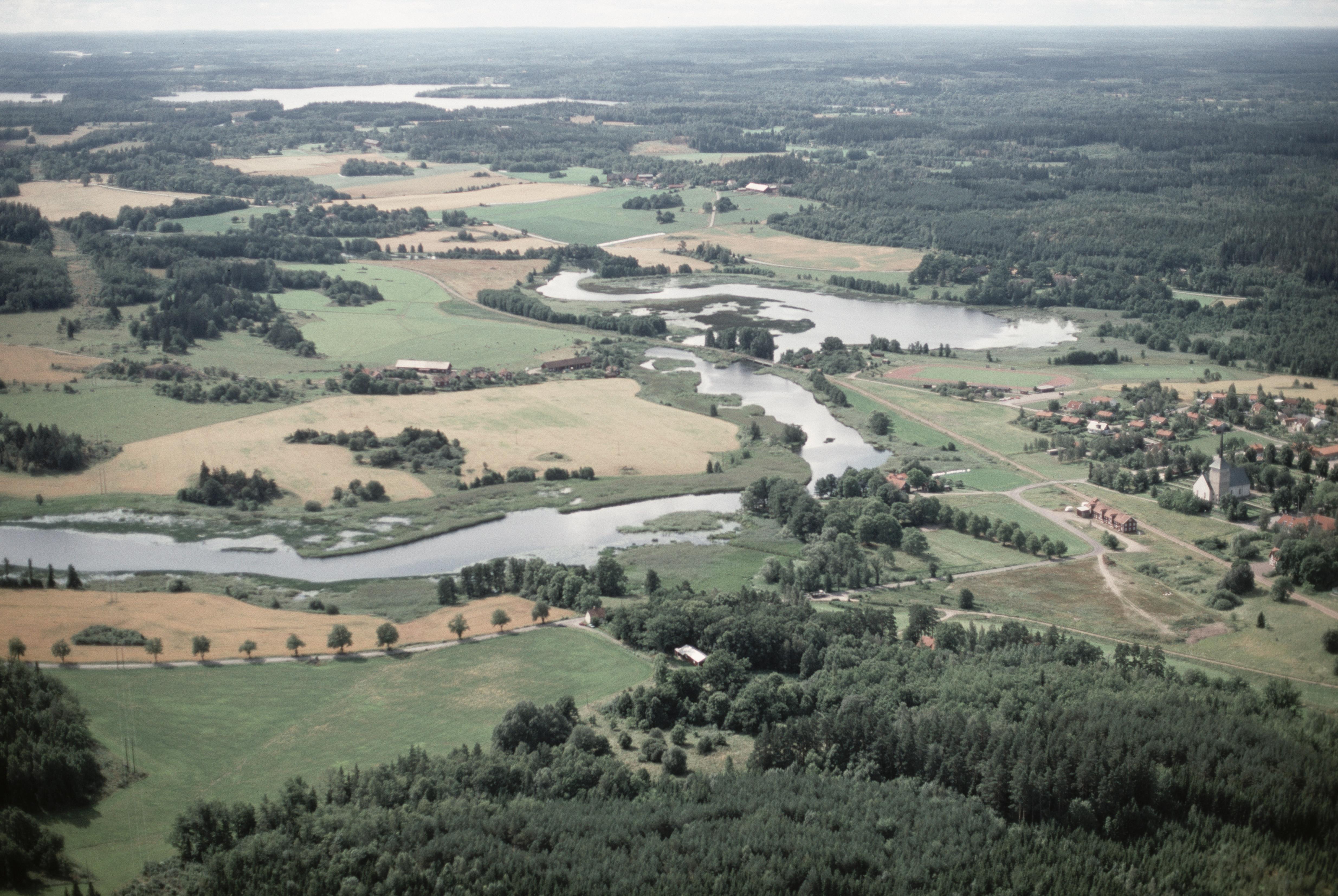 Beskrivning: Stångån / Kinda kanal vid tätorten Vist, söder om tätorten Sturefors. Vists kyrka till höger. Bilden är tagen mot (väderstreck): S