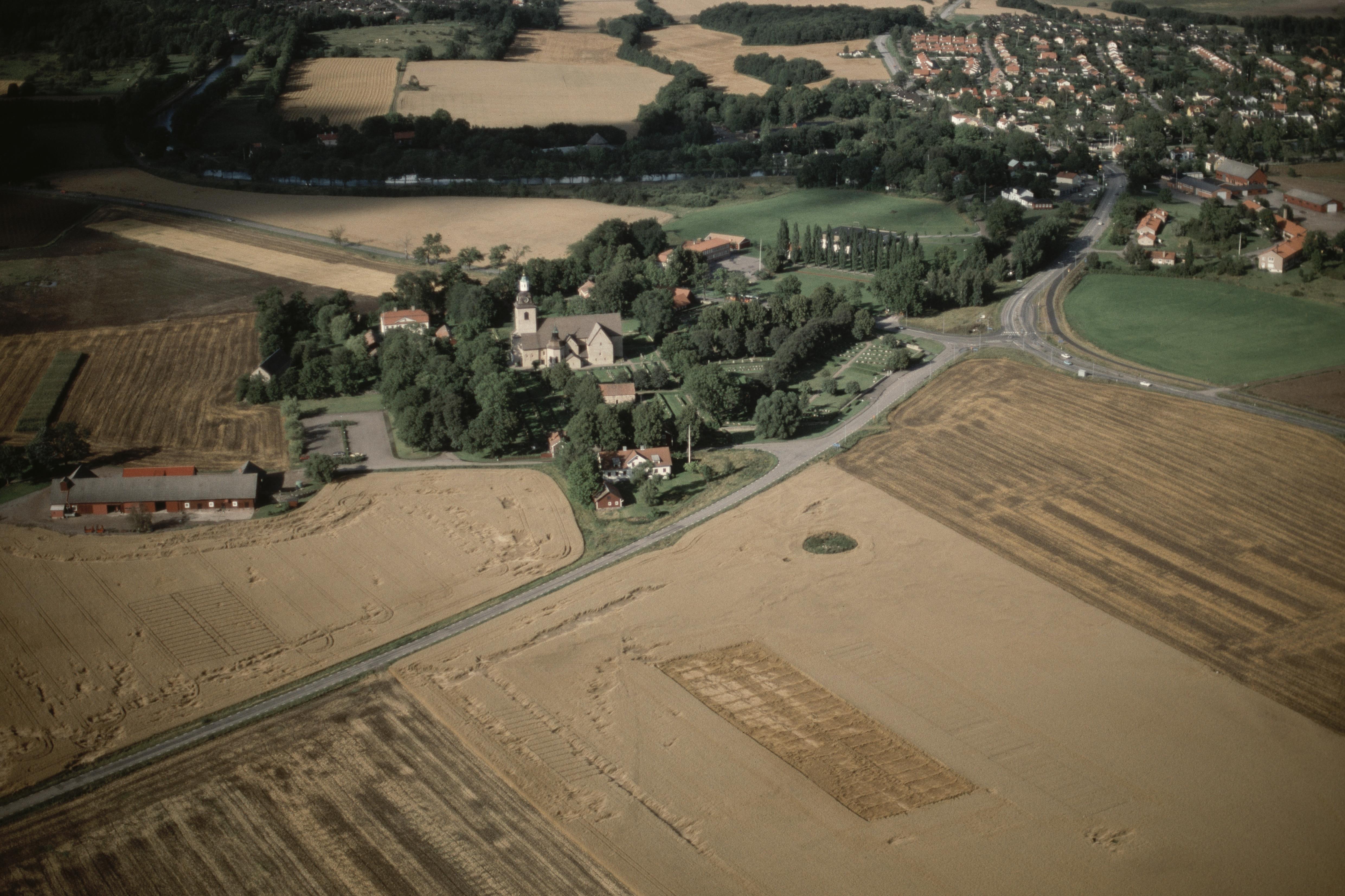 Beskrivning: Vreta klosters kyrka och klosterruin RAÄnr Vreta kloster 50:1-5, I bildens övre del Göta kanal. Bilden är tagen mot (väderstreck): NNO