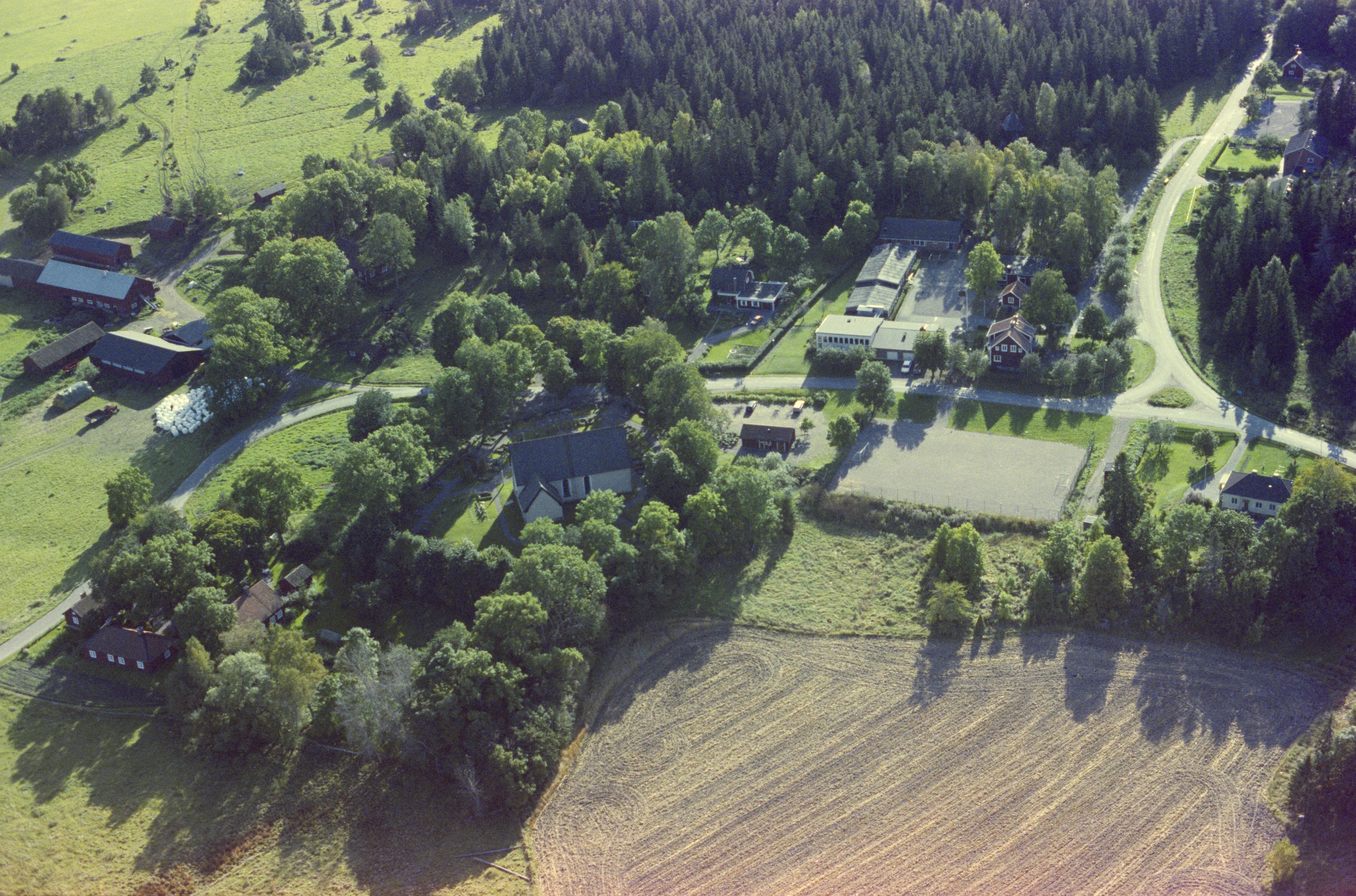 Beskrivning: Lagga kyrka och kyrkby. Bilden är tagen mot (väderstreck): SSV